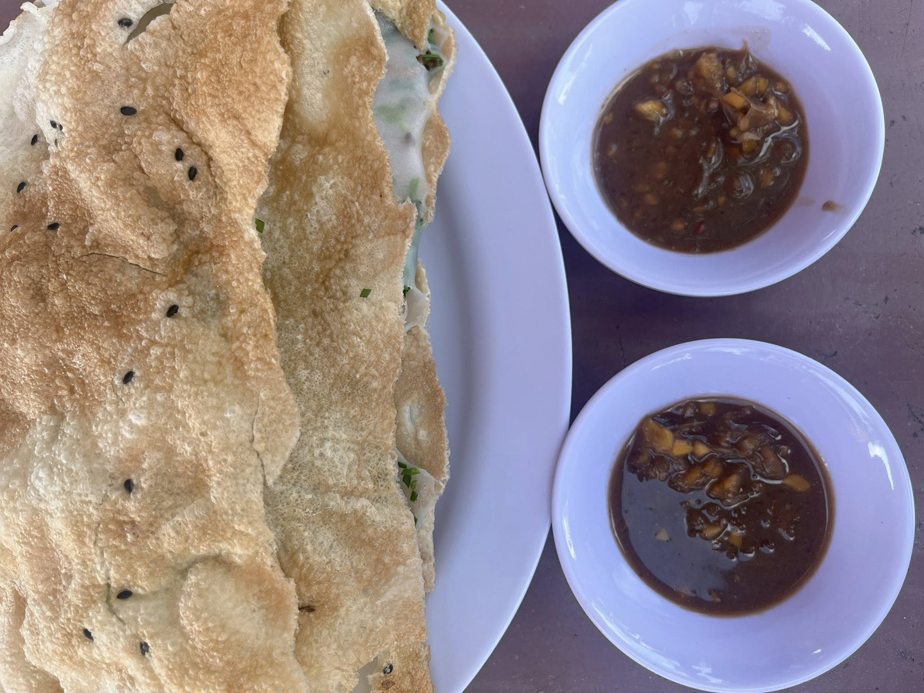 Cô gái trẻ cũng nêu cảm nhận, bánh đập ngon nhất là khi ăn nóng. Độ giòn tan của lớp bánh tráng kết hợp với độ dẻo mịn của bánh ướt, cùng với phần nhân mỡ hẹ béo ngậy khiến món ăn trở nên đặc biệt, giúp du khách cảm nhận trọn vị.