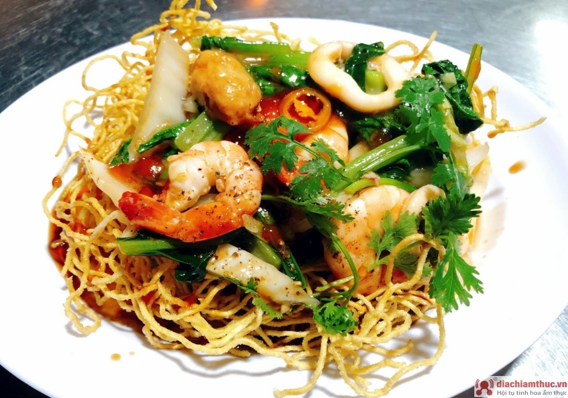 Mì sụa là món ăn truyền thống của cộng đồng người Hoa tại Sóc Trăng. Mì sụa được chế biến bằng nguyên liệu chính là đậu nành, nên cọng mì có màu vàng óng, thường to hơn so với các loại mì khác. Mì sụa có hai loại: Loại mặn và loại không mặn. Mỗi loại chế biến thành các món ăn khác nhau như mì sụa mặn (ngon nhất khi xào), còn mì sụa ngọt dùng để nấu chè. Khi ăn mì sụa xào, quý khách sẽ cảm nhận được vị dai, giòn của mì hòa cùng với vị béo, ngọt của thịt. Tô mì xào thường được ăn kèm với bát nước dùng cho đỡ ngấy.