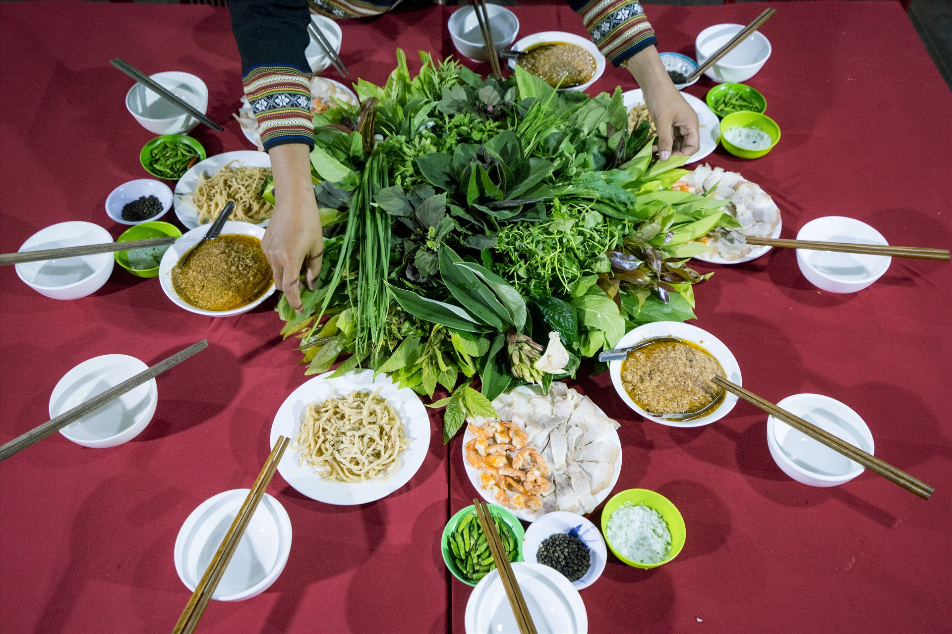 Khi ăn, người ta cuốn lá thành hình phễu, gắp thức ăn vào bên trong rồi quệt với nước chấm sền sệt, từ từ cảm nhận đủ hương vị từ ngọt, chan chát đến chua chua, beo béo của các loại lá rừng Tây Nguyên.