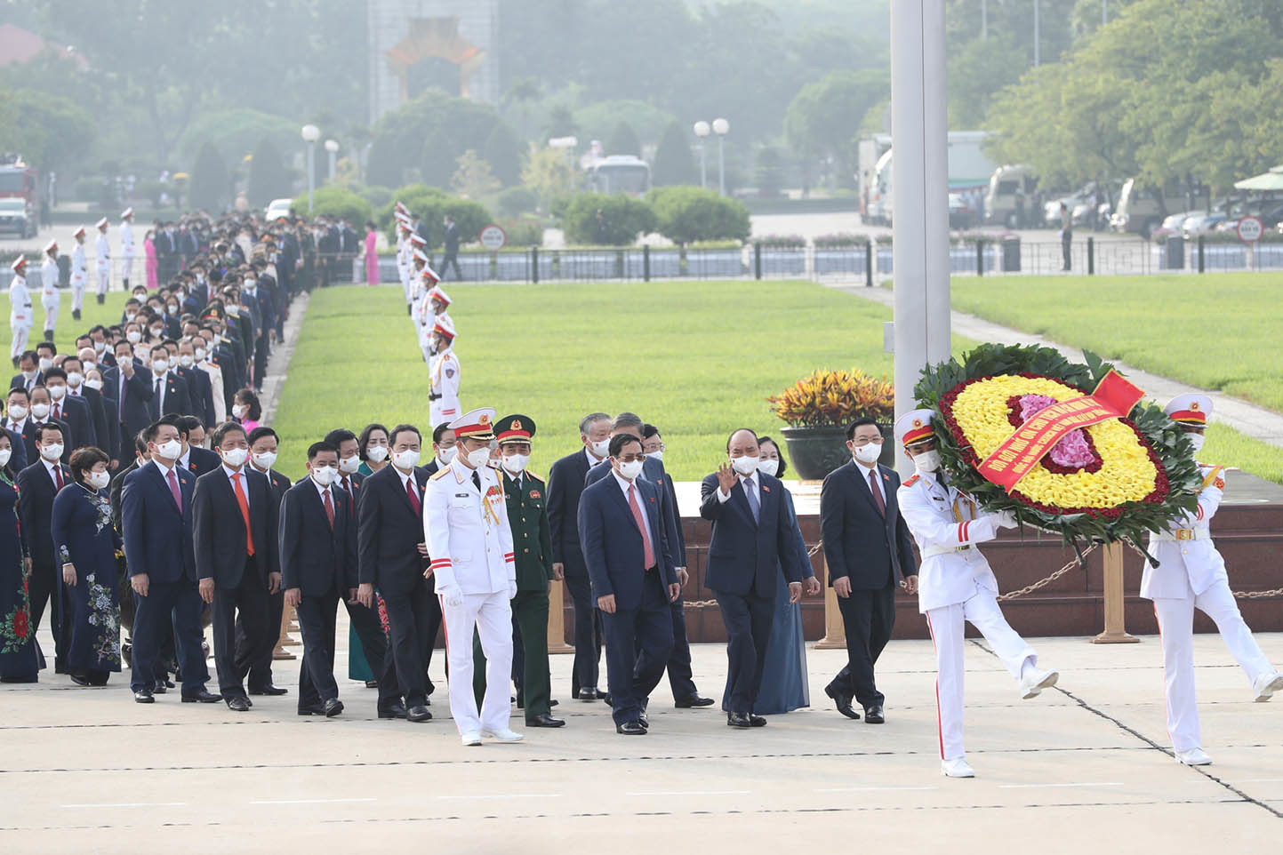 Trước giờ khai mạc kỳ họp thứ nhất, Quốc hội khóa XV, lãnh đạo Đảng, Nhà nước, Mặt trận Tổ quốc Việt Nam, Đại biểu Quốc hội đã đến đặt vòng hoa và vào Lăng viếng Chủ tịch Hồ Chí Minh.