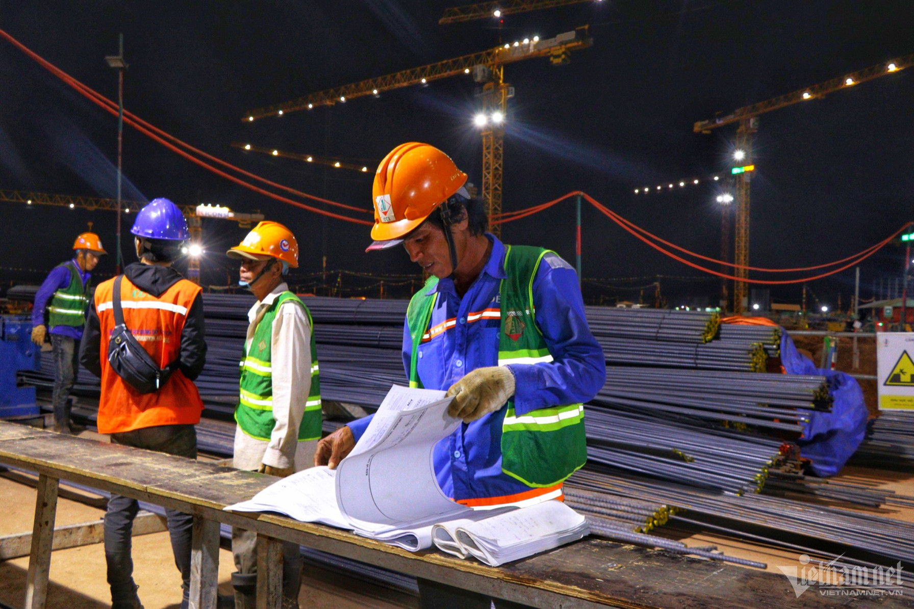 Ghi nhận của P.V VietNamNet vào đêm ngày cuối tháng 1, các nhà thầu vẫn đang triển khai nhiều mũi thi công, tăng cường máy móc, trang thiết bị, dự kiến làm xuyên Tết.