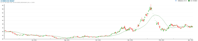 Trên thị trường chứng khoán, cổ phiếu CII ghi nhận đạt đỉnh vào ngày 7/1 khi đạt 57.900 đồng/cp. Chốt phiên giao dịch ngày 5/4, cổ phiếu CII đạt mức 31.550 đồng/cp. Với mức giá này, đồ thị biểu đồ cổ phiếu hai tháng qua đang đi ngang.