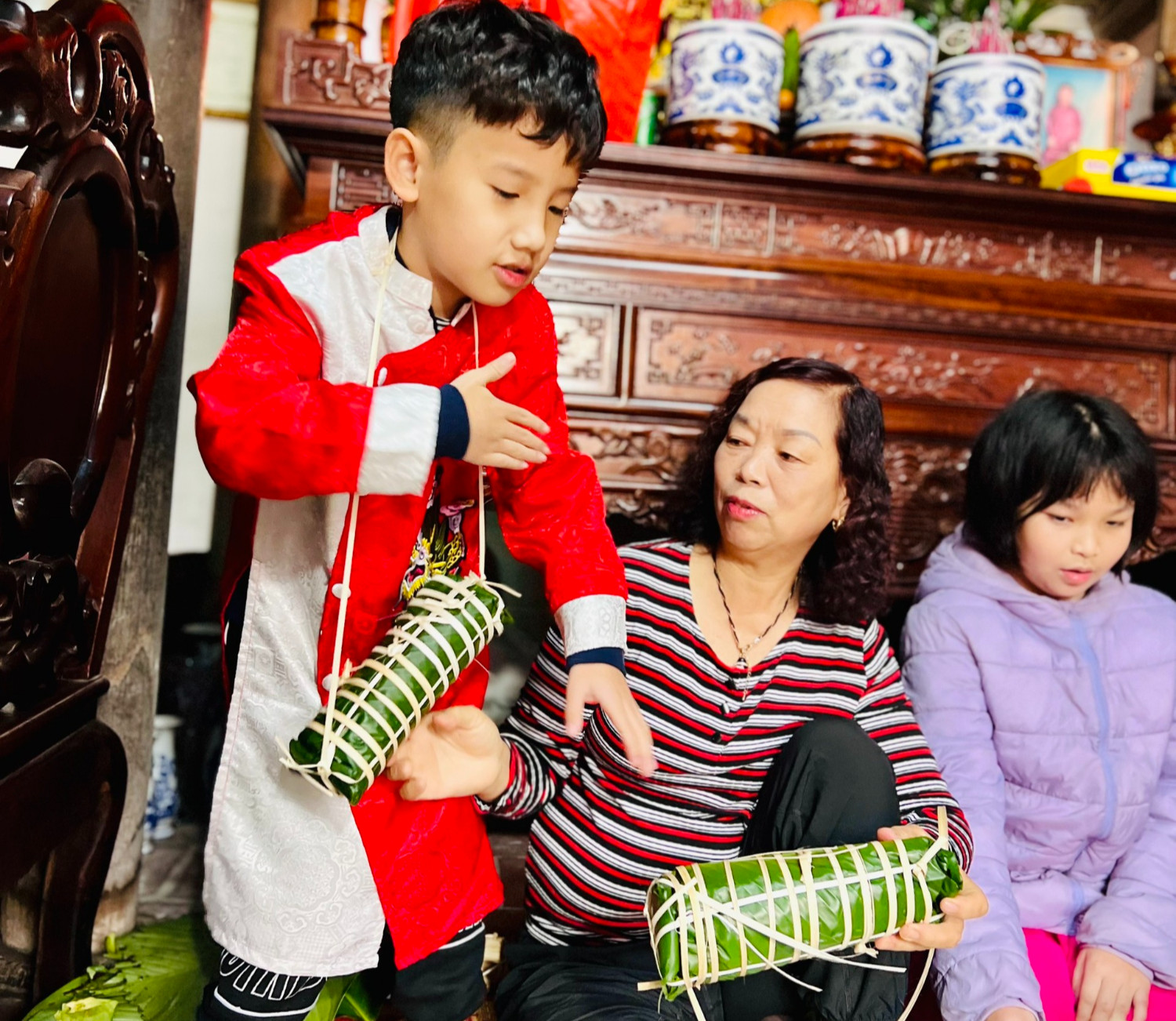 Muốn duy trì nếp nhà ý nghĩa, mỗi năm bà Phương đều tự mình đi mua sắm đồ về cho cả gia đình cùng quây quần gói bánh chưng. Và bao giờ bà cũng nhớ ưu tiên gói những chiếc bánh chưng con cho các cháu chắt của mình.