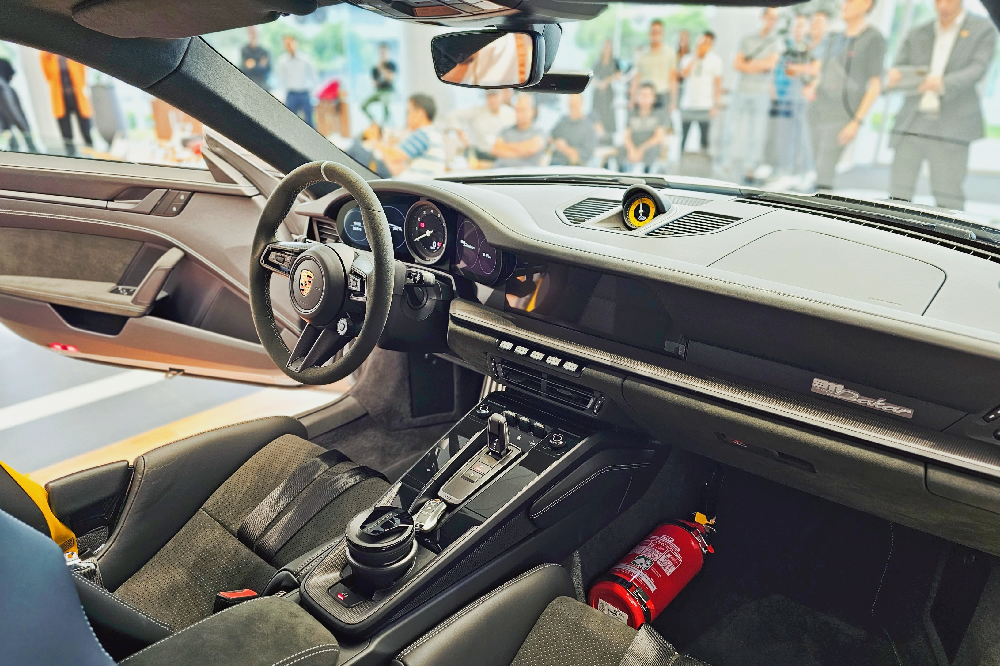Về nội thất, chiếc Porsche 911 Dakar đầu tiên tại Việt Nam được chủ nhân loại bỏ hàng ghế sau để lắp bộ khung chống lật chính hãng. Hàng ghế lái và ghế phụ bên được làm theo phong cách xe đua, không điều chỉnh lưng ghế do là một khối liền bằng carbon và chỉ có thể điều chỉnh được độ cao thấp. Phần ghế ngồi được bọc da trơn kết hợp chất liệu Race-Tex.