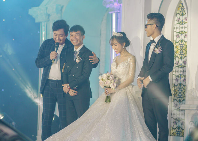 Hôn lễ của Minh Anh còn có sự góp mặt của nhiều ngôi sao nổi tiếng. Trong đó, Trấn Thành đảm nhận vai trò MC dẫn dắt xuyên suốt đám cưới.
