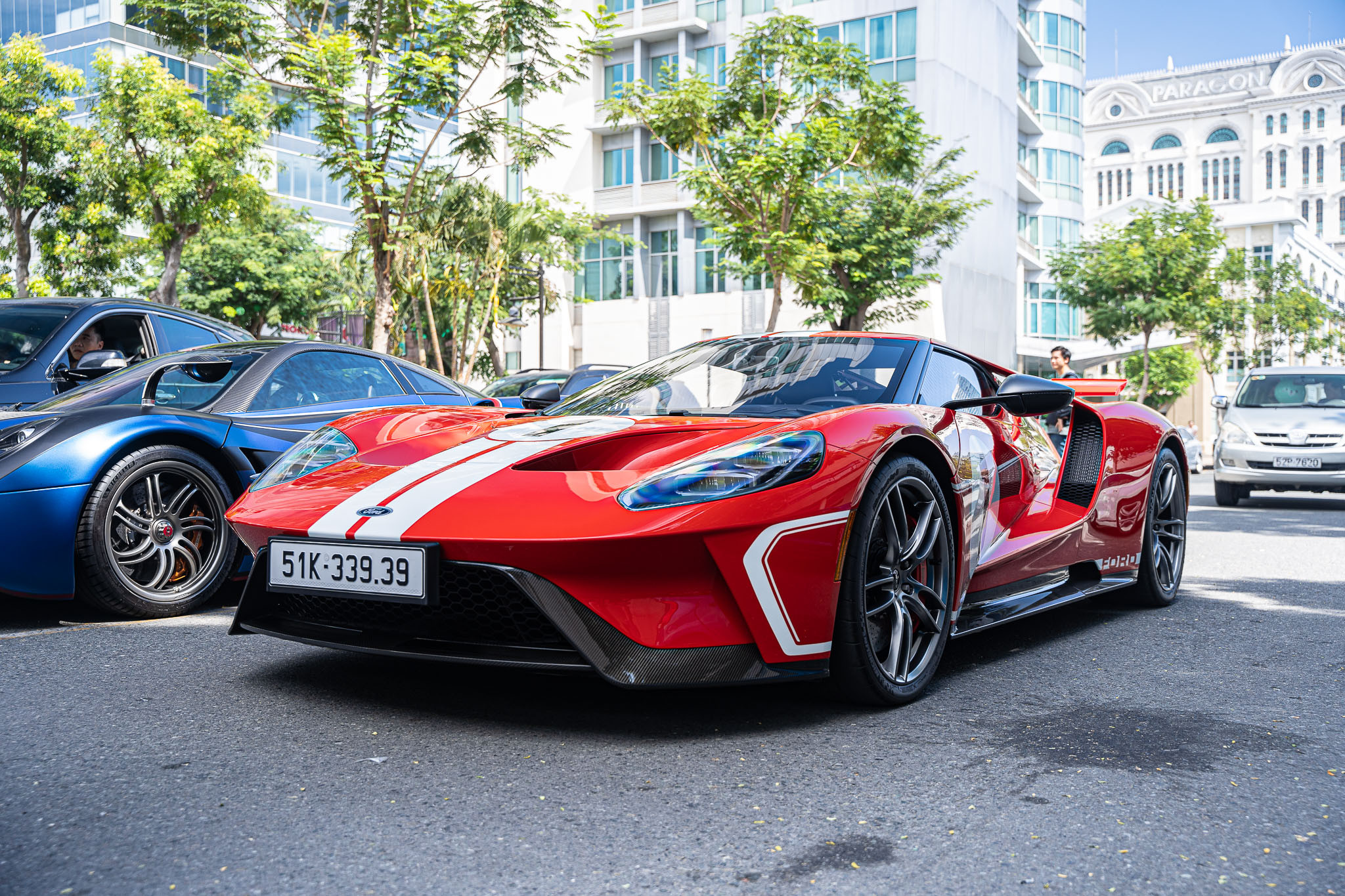 Với giá trị lăn bánh hơn 60 tỷ đồng, chiếc Ford GT biển thần tài nhỏ lại nổi bật hơn cả khi có ngoại thất sơn màu đỏ tươi cùng gói trang trí ’67 Heritage Edition.