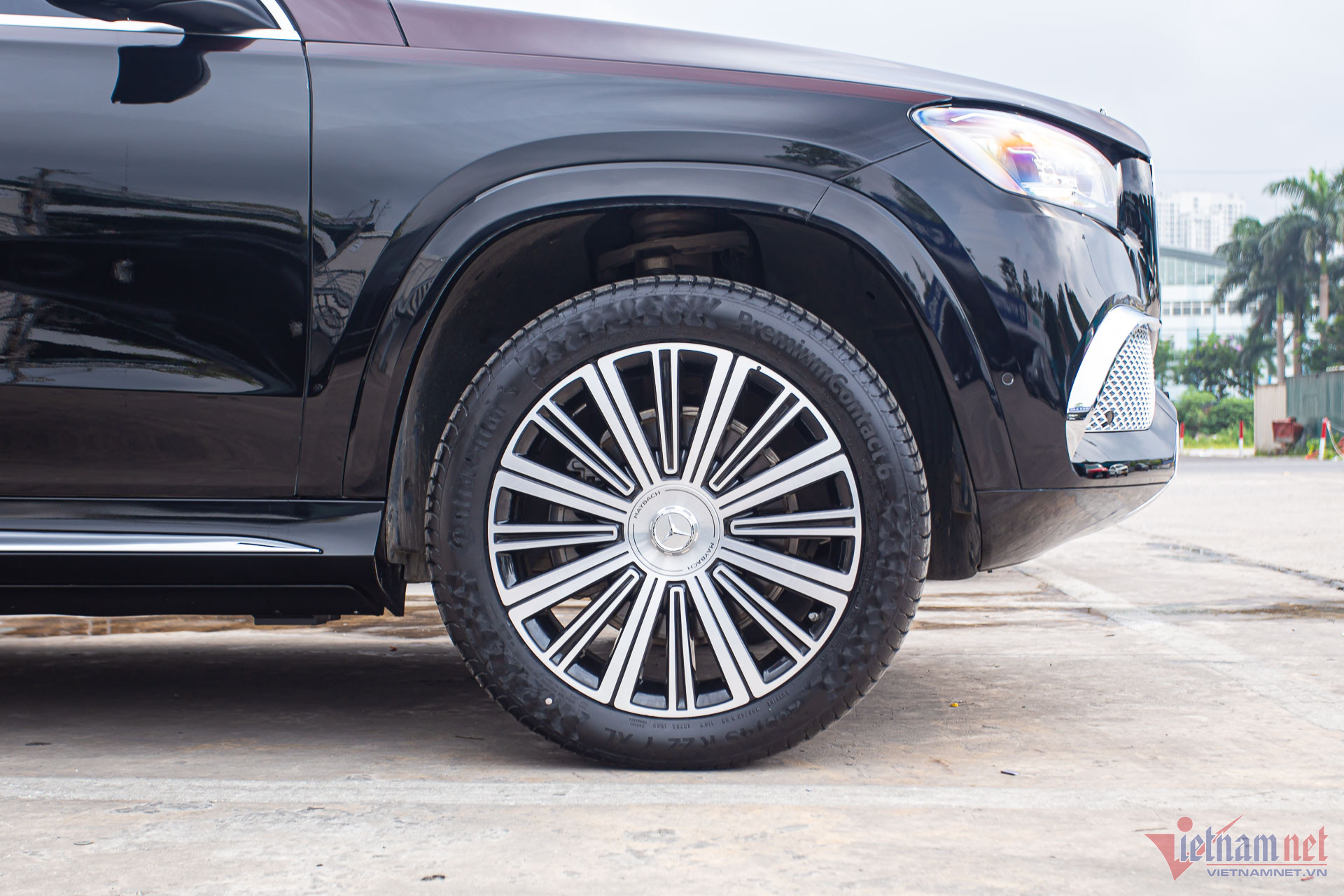 Bộ la-zăng tiêu chuẩn 5 chấu kép kích thước 21 inch nâng cấp lên bộ mâm Maybach đa chấu hoàn thiện hai tông màu sáng – tối, kích thước lớn hơn khi ở mức 22 inch. Riêng bộ mâm đã có giá khoảng 70 triệu đồng, đi kèm bộ lốp Continental chính hãng mới giá 55 triệu đồng.
