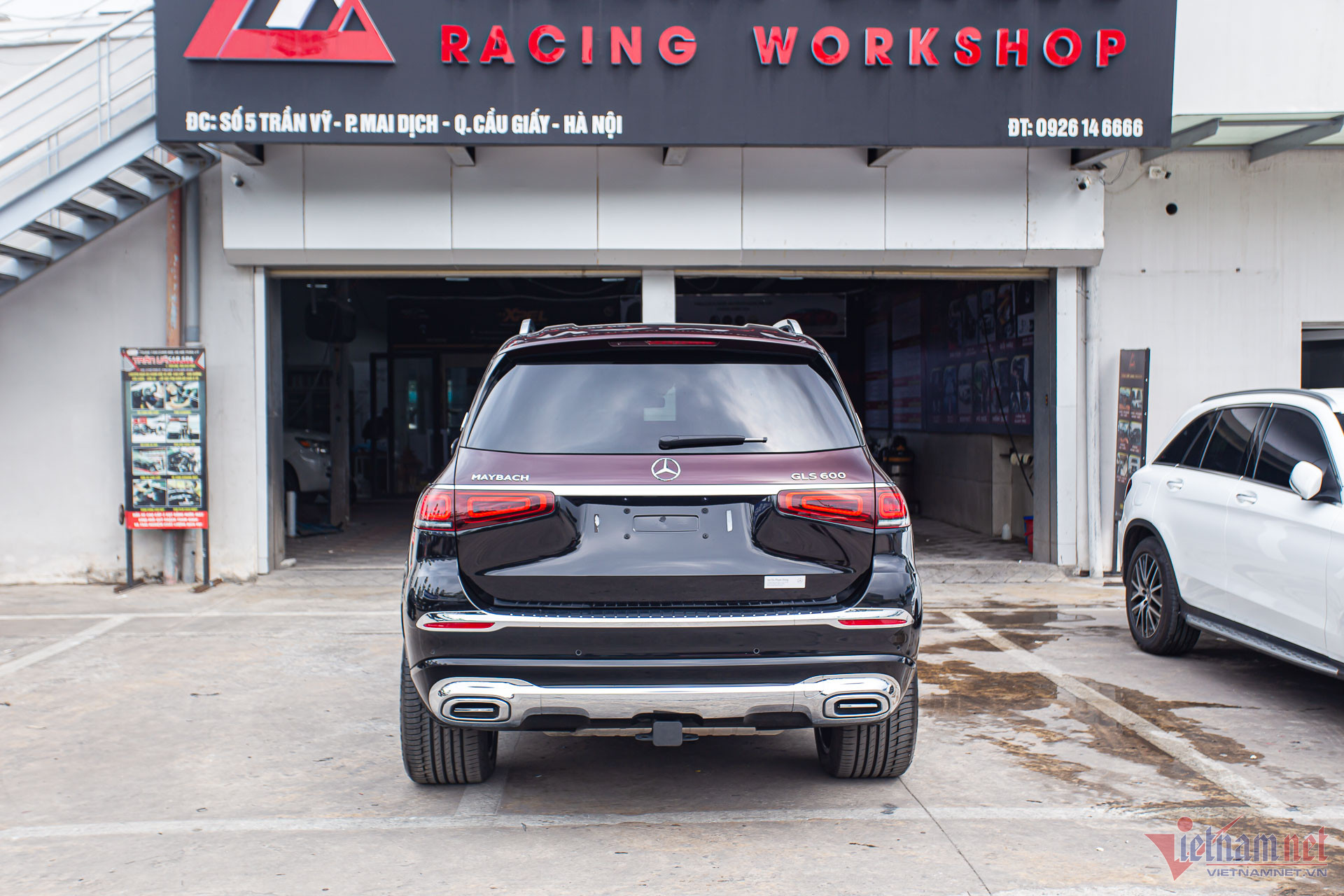 Phần đuôi xe thay đổi nhẹ với cản sau của bản Maybach và dòng chữ “GLS 600” cùng “Maybach”. Do nhập khẩu từ thị trường Mỹ, xe có thêm moóc để kéo theo rơ-moóc phía sau. Cụm đèn hậu không thay đổi so với bản cao cấp.