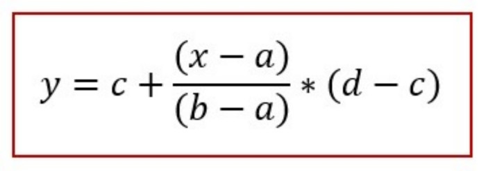 Áp dụng công thức nội suy tính điểm chuẩn tương đương đối với điểm thi tốt nghiệp THPT y từ điểm chuẩn đánh giá tư duy x = 71.68 sẽ được tính như sau: