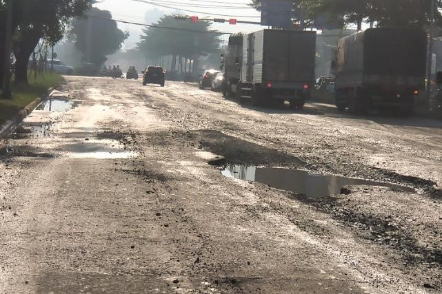Hiện mặt đường tại nhiều vị trí bị hư hỏng nặng tạo hố sâu, bề mặt ngập nước, vạch sơn đường mờ, mất tác dụng cảnh báo,… tiềm ẩn nguy cơ mất an toàn cho người tham gia giao thông.