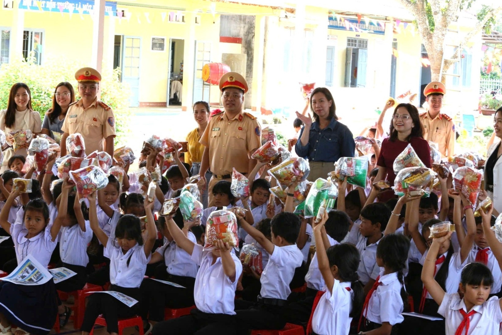 Công an Đắk Lắk kết hợp tổ chức Trung thu và tuyên truyền an toàn giao thông cho học sinh nghèo, người dân tộc thiểu số tại các buôn làng.