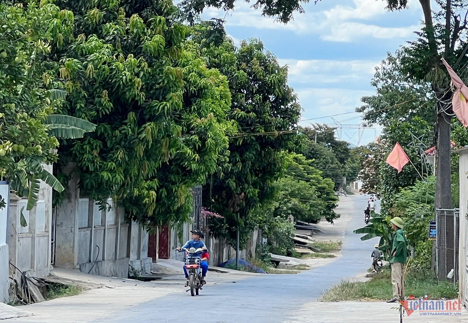 Sau vụ cháy hôm qua, cây cối trên dãy núi từ xóm 1 đến xóm 4, 5 cũ (xã Thượng Tân Lộc) bị khô héo. Dọc tuyến đường trục chính liên xóm, nhiều nhà dân đóng kín cửa mặc dù trên núi ngọn lửa đang bùng phát trở lại.