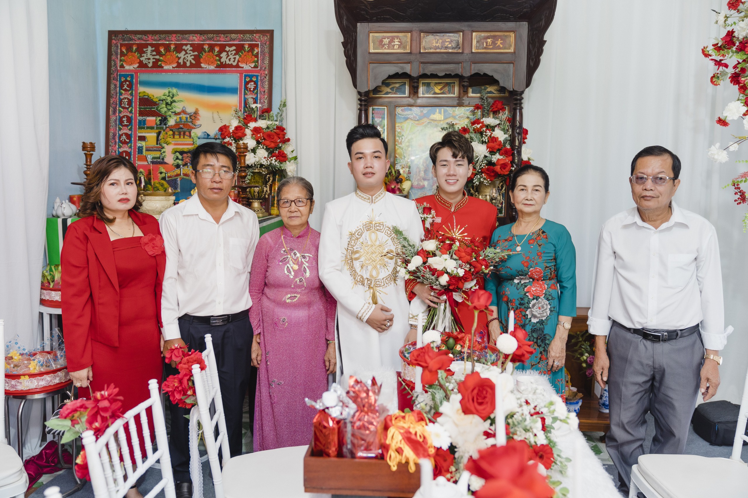 Lễ cưới đồng tính này có đầy đủ sự hiện diện của phụ huynh hai bên gia đình, bạn bè hai bên.