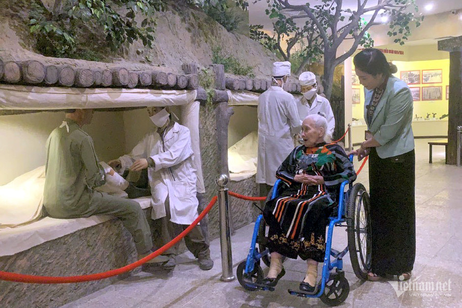Dù đã 94 tuổi, tóc bạc, mắt mờ và phải dùng xe lăn để di chuyển nhưng bà Toản vẫn vượt hành trình dài từ thành phố mang tên Bác về với mảnh đất Điện Biên anh hùng.