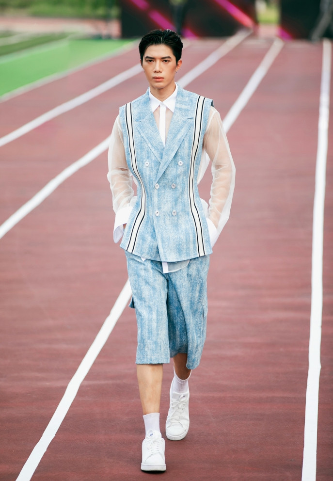 Trước đó, mở màn cho bộ sưu tập này là Top 3 The Next Gentleman Phạm Kiên - Minh Khắc - Minh Kha. Cả ba đã chạy đua hết nửa sàn runway mới dừng lại catwalk, mang đậm tinh thần của chủ đề bộ sưu tập.