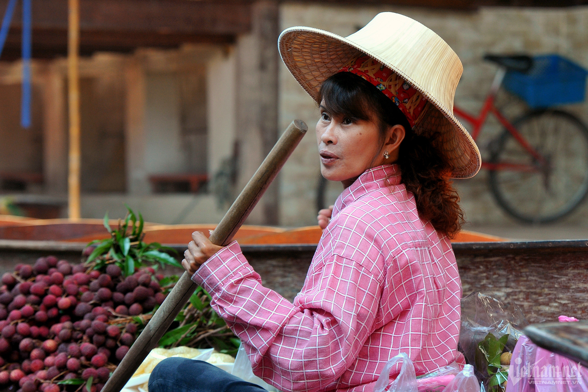 Những người bán hàng ở đây di chuyển bằng ghe chèo tay chậm rãi, bên trên thuyền đầy ắp gia vị, trái cây, rau quả, thịt cá…