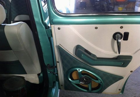 | Phần loa trong xe với loa hột xoài được gắn trên cửa. |
