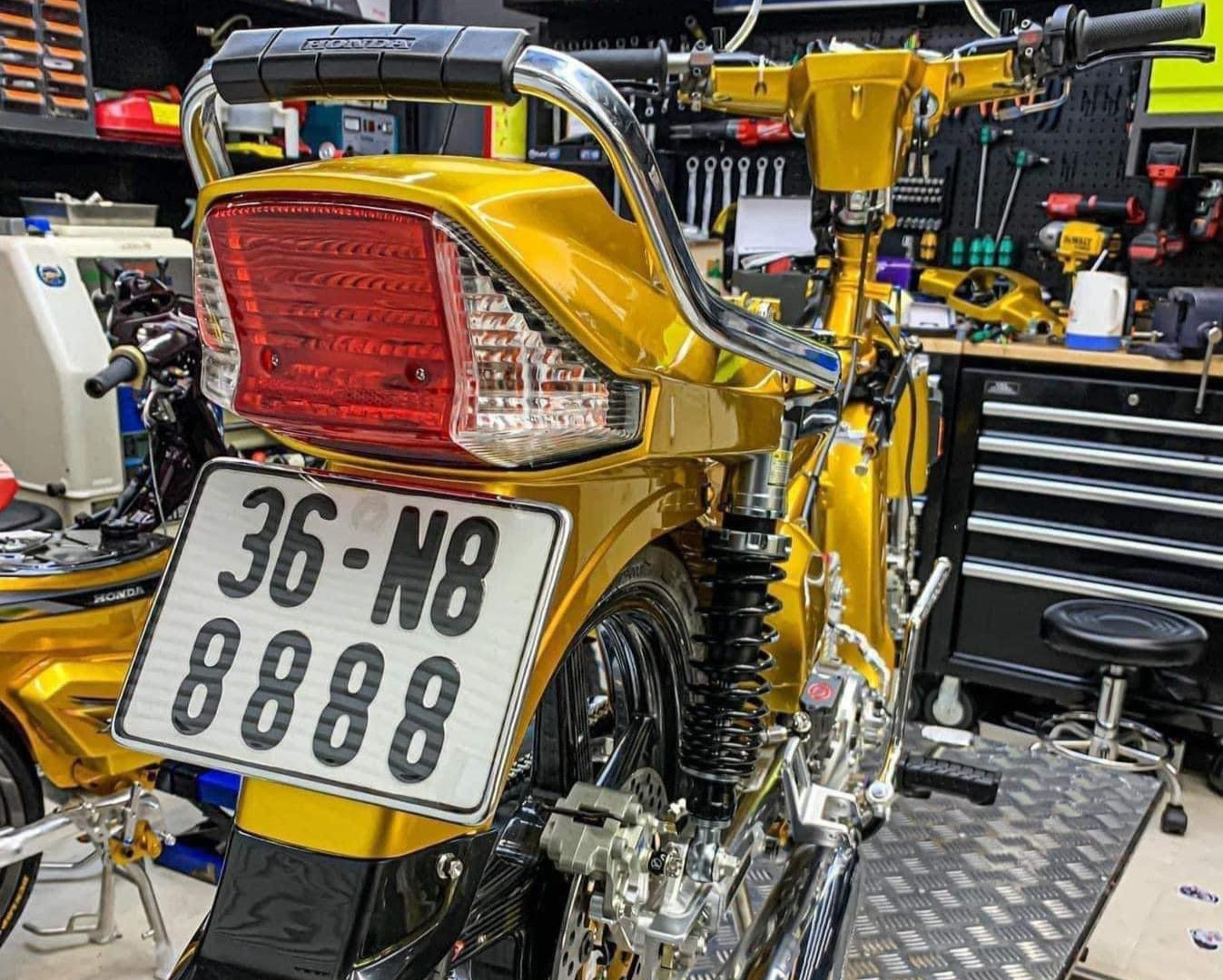 Và một trong những chiếc xe máy "cùi bắp" được anh Tuấn đầu tư độ lại với chi phí đắt nhất là Sufat Retot 100cc biển tứ quý 36N8-8888.