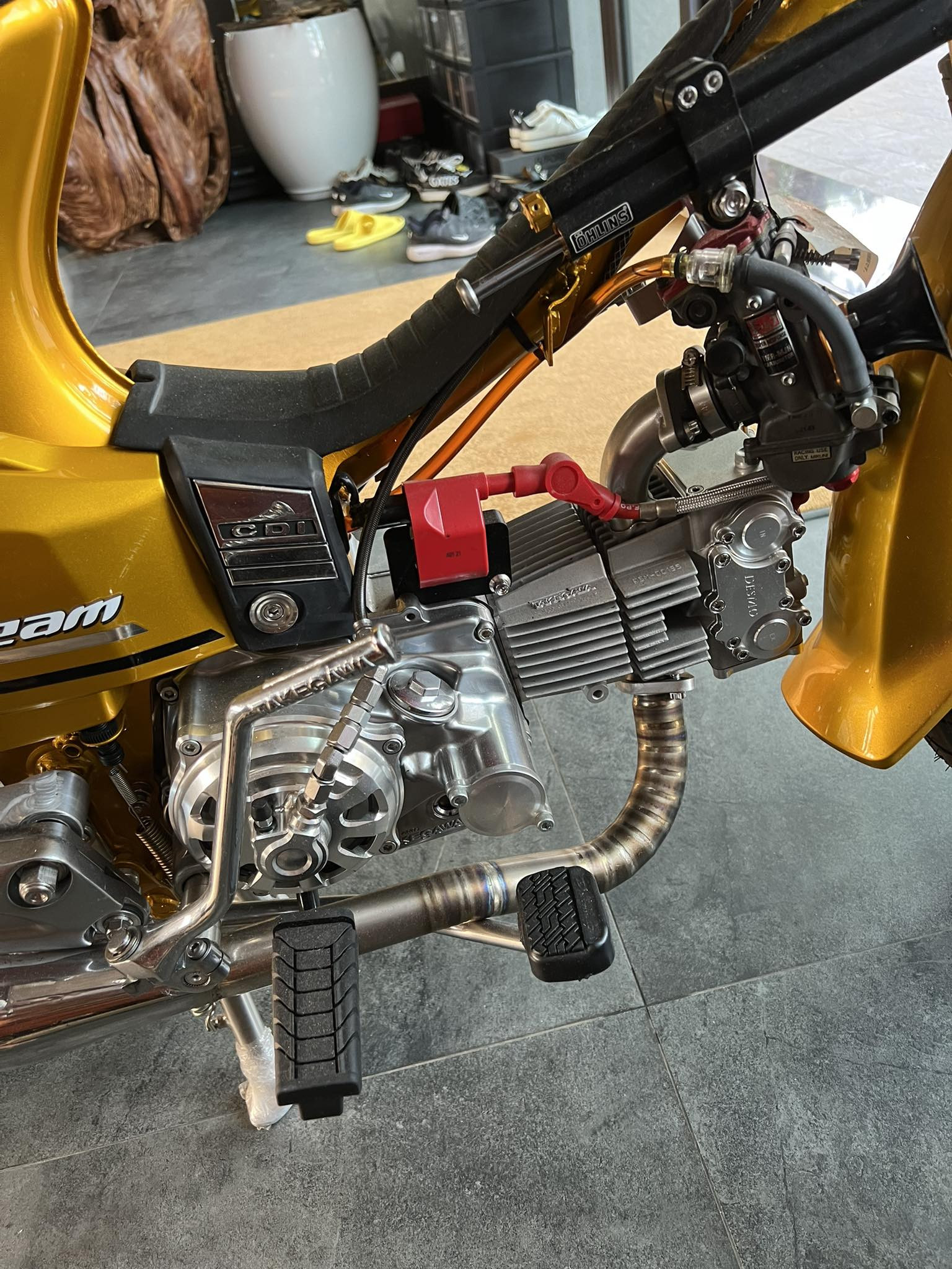 Đặc biệt là khối động cơ xe Sufat được thay mới bằng cục máy Takegawa từ Nhật đi kèm với chế hòa khí và cổ pô titan. Chỉ riêng khối máy được nhập từ Nhật Bản đã tiêu tốn của anh Tuấn lên đến gần 200 triệu đồng.