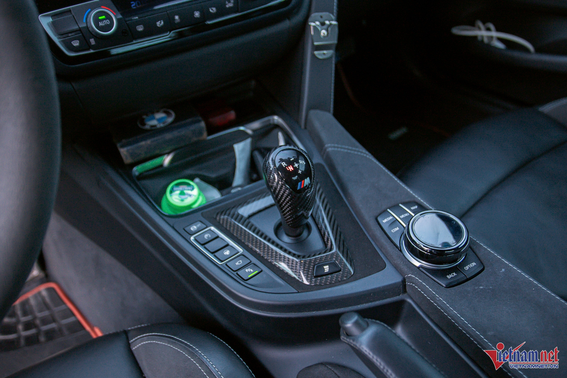 Bên trong nội thất của chiếc BMW M4 vốn khá ít trang bị, do đơn vị phân phối chính hãng thời điểm đó tối ưu chi phí để giảm giá thành xe. Để tăng tính thẩm mỹ, anh Đức đã làm mới nhiều chi tiết bằng ốp trang trí sợi carbon.