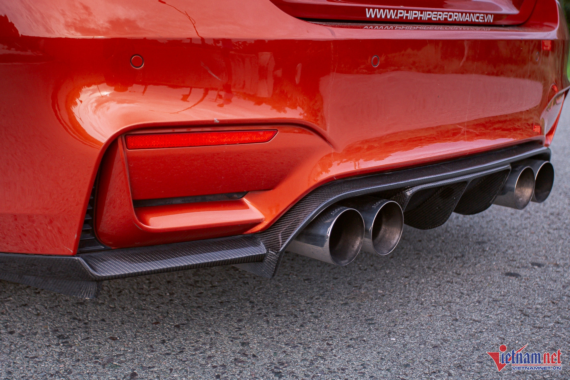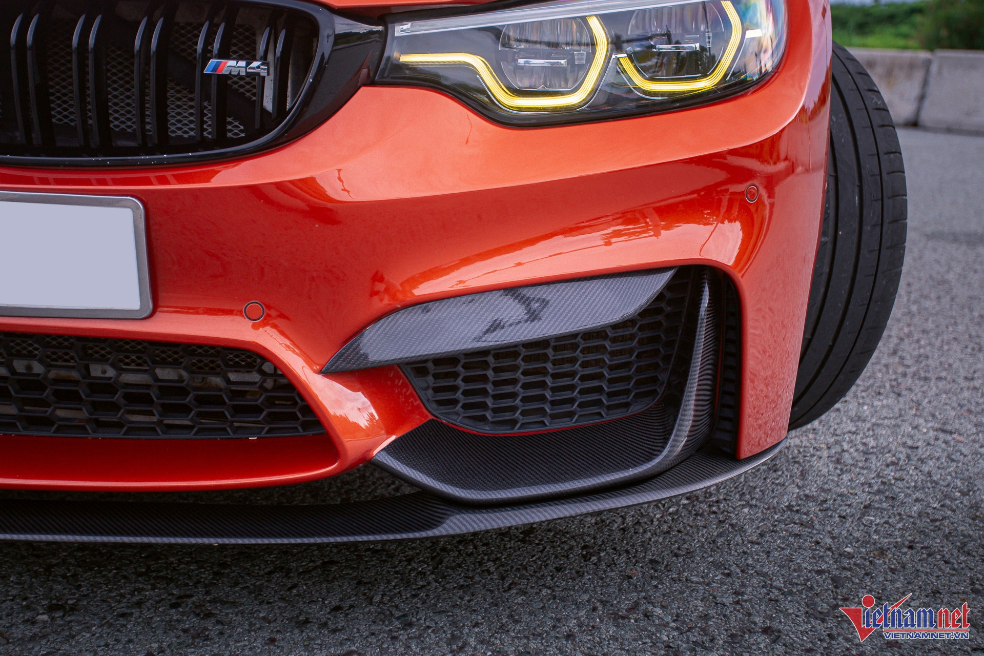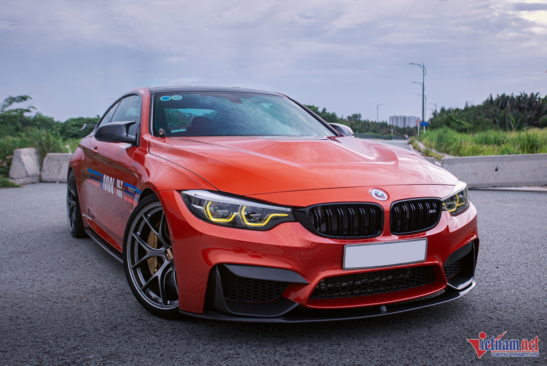 Chiếc BMW M4 này là một trong số đó. Đặc biệt hơn, xe có ngoại thất sơn màu đỏ cam - tông màu hiếm thấy trên dòng xe này ở nước ta. Theo tìm hiểu của VietNamNet, mẫu xe này từng được phân phối chính hãng với giá hơn 4 tỷ đồng. Sau khi hoàn tất thủ tục lăn bánh, chủ xe phải bỏ ra gần 5 tỷ đồng để sở hữu chiếc xe.