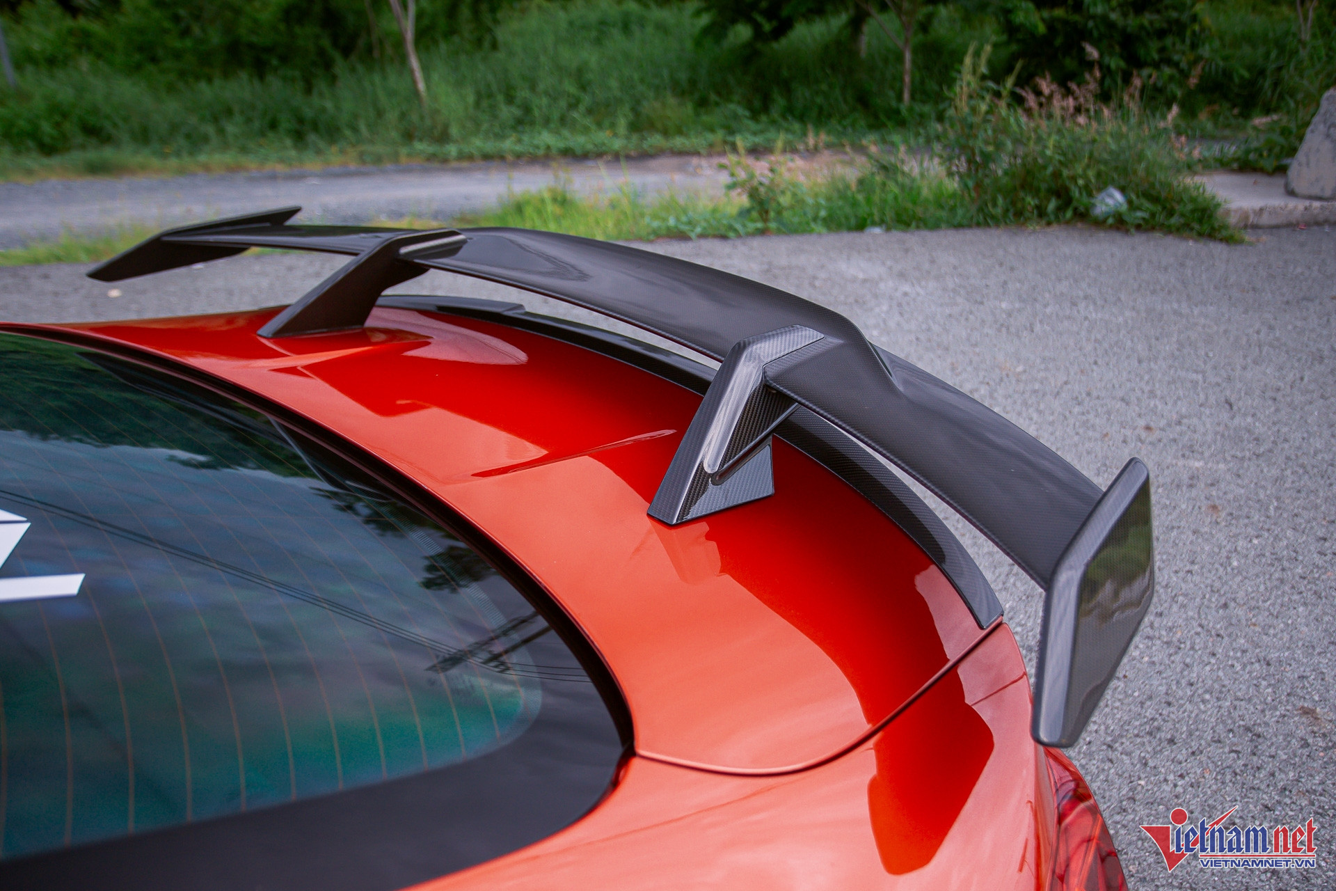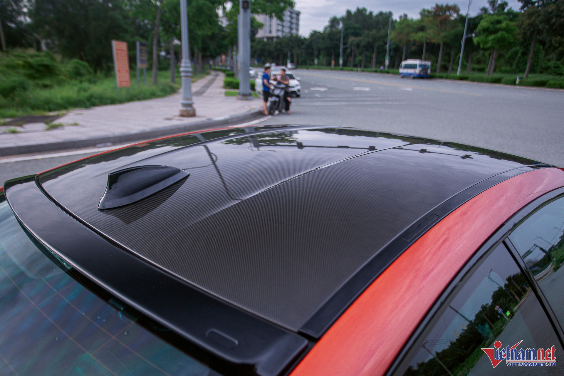 Tương tự, ốp gương chiếu hậu, líp sườn và mui xe cũng làm từ chất liệu carbon. Đuôi xe vốn đơn giản được bổ sung thêm bộ khuếch tán và cánh gió lớn bên trên. Tính riêng những món đồ trên, chủ xe ước tính tiêu tốn khoảng 200 triệu.