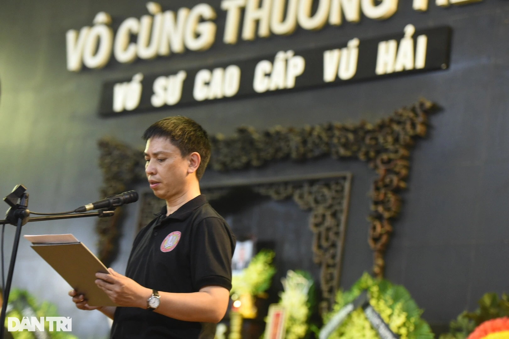 Em trai võ sư Vũ Hải, anh Vũ Mạnh Hùng thay mặt gia đình cảm ơn mọi người đã đến tiễn biệt anh trai mình trong chặng đường cuối (Ảnh: Toàn Vũ).