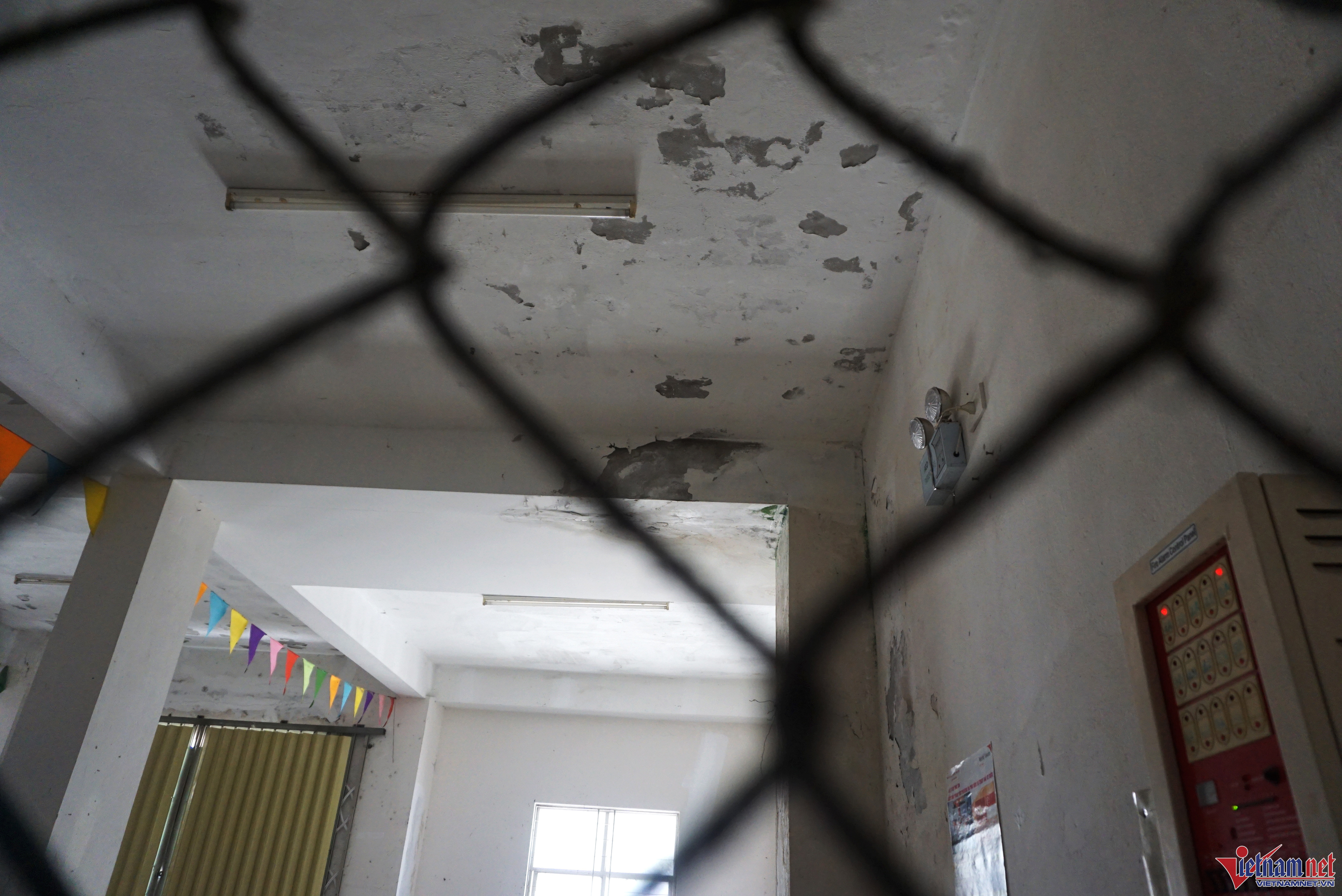 Ghi nhận của PV VietNamNet, tại tòa nhà 1C chung cư Làng Cá (phường Nại Hiên Đông, quận Sơn Trà) tường bong tróc, rêu mốc nhếch nhác, hệ thống chữa cháy hư hỏng, thang máy xuống cấp...