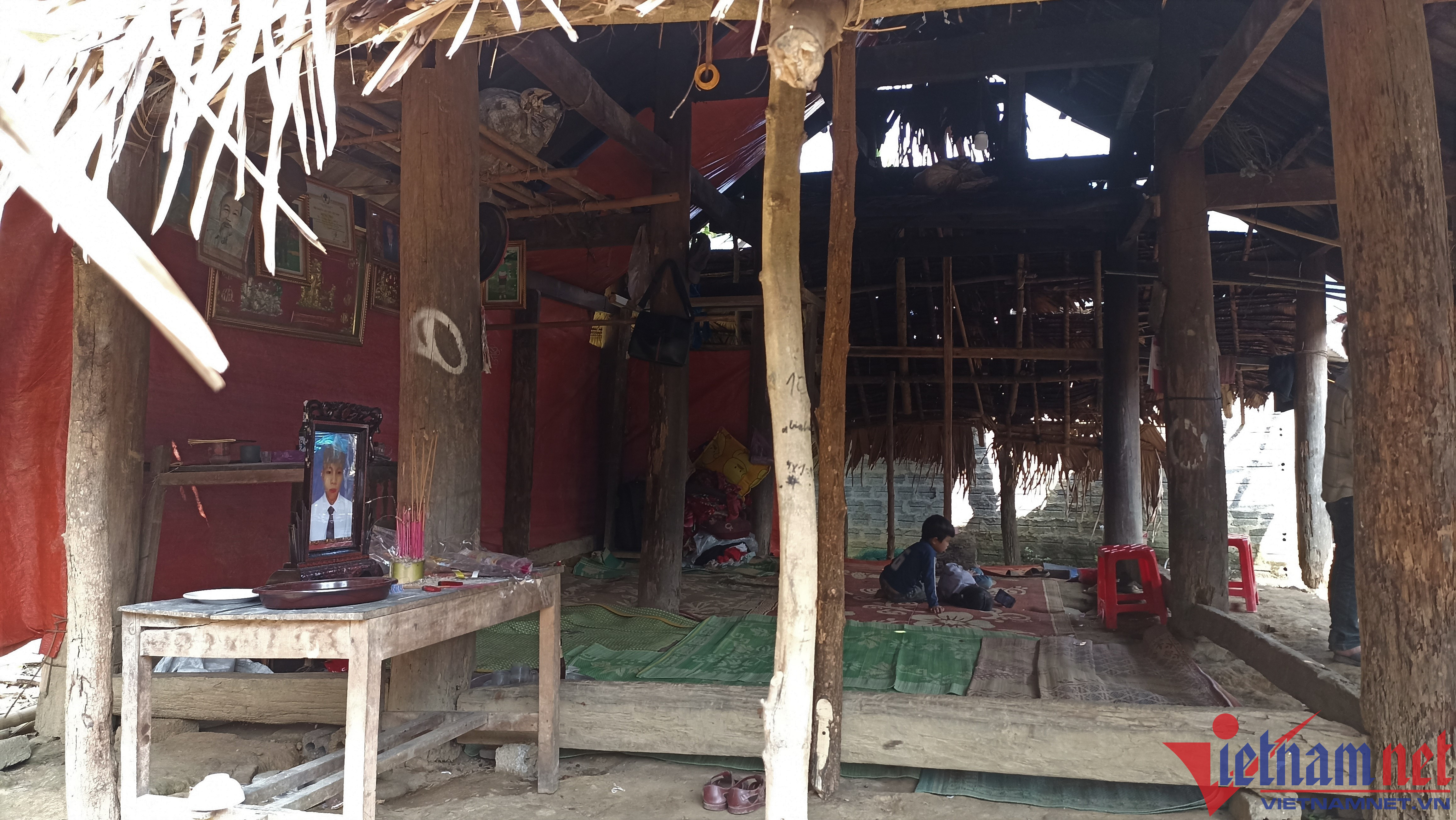 Không khí tang thương bao trùm lên căn nhà dột nát của ông Vi Sáng Ngọc (SN 1947, trú thôn Thanh Tiến, xã Thanh Quân, huyện Như Xuân, Thanh Hóa). Gần một tuần qua, vợ chồng ông như người mất hồn khi tai hoạ bất ngờ ập đến khiến một người con trai tử nạn, một đứa đang trong tình trạng "ngàn cân treo sợi tóc".