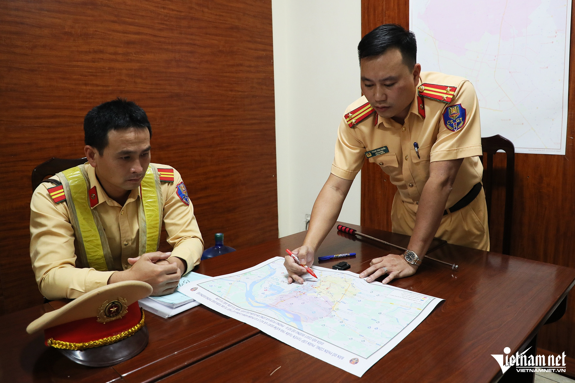 21h ngày 1/11, tại trụ sở của Đội CSGT đường bộ số 6 (Phòng CSGT Công an TP Hà Nội), Trung tá Phạm Văn Chiến - Đội trưởng- triển khai phương án tuần tra kiểm soát khép kín địa bàn. Nhất là xử lý các trường hợp "quái xế", nẹt pô, rú ga... gây mất an ninh trật tự, an toàn giao thông.