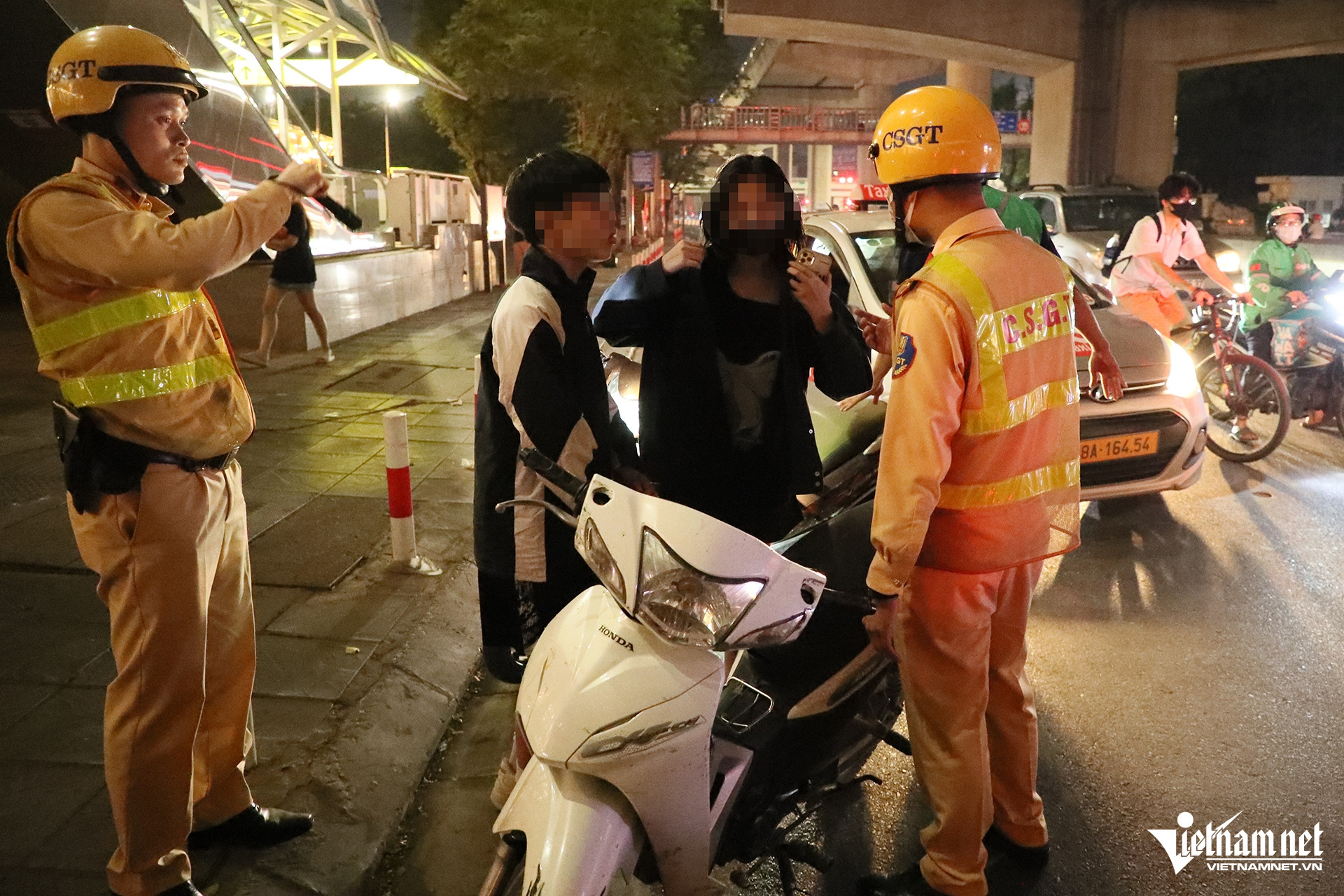 Khi tuần tra trên quốc lộ 32 (hướng từ huyện Hoài Đức - trung tâm thành phố), lực lượng chức năng phát hiện nhiều thanh thiếu niên chở 3, không đội mũ bảo hiểm...