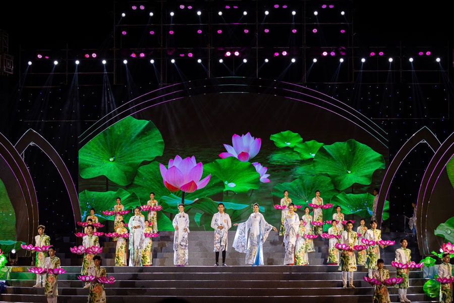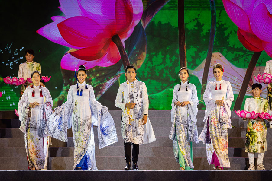 Nhiều gương mặt nổi tiếng như diễn viên Đinh Y Nhung, Hoa hậu Diễm Hương, Hoa hậu Phan Thu Quyên, MC Quỳnh Hoa, Á quân người mẫu thời trang Vũ Linh, Nam vương Trương Ngọc Tình, siêu mẫu quốc tế H’Ăng Niê, Hoa hậu Du lịch Phương Thanh, Á quân Việt Fashion Icon Lê Sim, Giải vàng người mẫu Việt Hàn - Nguyễn Thu Ngân, Nam vương Quốc tế Thành Tâm, Hoa hậu Thời trang Châu Âu Huyền Trân, Quán quân Người mẫu thời trang Châu Nguyễn, Á quân Fitness Model Cẩm Tú, Miss Earth Việt Nam 2021 Vân Anh đã có mặt tại Nghệ An để biểu diễn trong đêm bế mạc Lễ hội Làng Sen.Với những tà áo dài của NTK Việt Hùng, các người mẫu đến từ thành phố mang tên Bác đã khiến khán giả nơi Người sinh ra xúc động khi thắng cảnh quê Chủ tịch xuất hiện trên tà áo trong bộ sưu tập Sen Việt. Ở bộ sưu tập thứ 2, các người mẫu tiếp tục đưa khán giả đến thành phố mang tên Bác với những chiếc áo dài cách tân.Đây là điểm đến thần tiên, là những thắng cảnh đặc trưng của thành phố mang tên người và những cánh sen được công nghệ hoá, trẻ hơn, năng động, hiện đại và đến gần hơn với giới trẻ.Qua bộ sưu tập thứ 3 mang tên 'Những Sắc màu Thành phố' thể hiện không gian văn hoá Hồ Chí Minh như món quà tinh thần kính dâng vị lãnh tụ của dân tộc trong ngày sinh nhật của Người. Đây cũng là tấm lòng của những người con miền Nam hướng về Bác. Dù bận rộn với vai trò quản lý Nhà văn hóa Thanh Niên TP.HCM nhưng MC Quỳnh Hoa vẫn dành thời gian luyện tập và trình diễn cùng các thành viên trong đoàn.Nữ MC xinh đẹp sóng đôi cùng Nam vương Ngọc Tình trên những chiếc áo dài đẹp mắt.Các chân dài như H’Ăng Niê, Vân Anh, Lê Thu Quyên… vẫn miệt mài chạy show và không thể vắng mặt trong các buổi biểu diễn của NTK Việt Hùng vì sự thân tình sau nhiều năm gắn kết. Trên hết vẫn là một đêm diễn đọng lại nhiều cảm xúc vì tất cả góp phần chung vui trong ngày sinh Chủ tịch Hồ Chí Minh. Hoa hậu Diễm Hương và diễn viên Đinh Y Nhung tái xuất sân khấu sau một thời gian vắng bóng, cả hai vẫn cuốn hút như ngày nào với thần thái chuyên nghiệp. Khán giả xem chương trình thích thú trước sự xuất hiện của các mỹ nhân đến từ miền Nam.