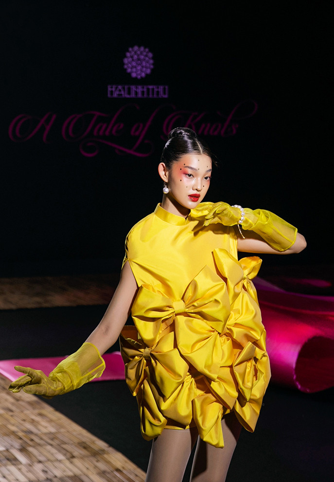 Show diễn Câu chuyện của những chiếc nơ - A tale of knots của NTK Hà Linh Thư diễn ra tối 24/5 tại TP.HCM. BST gồm 52 bộ trang phục mang hơi thở nghệ thuật chèo với nhân vật chính là Thị Mầu.
