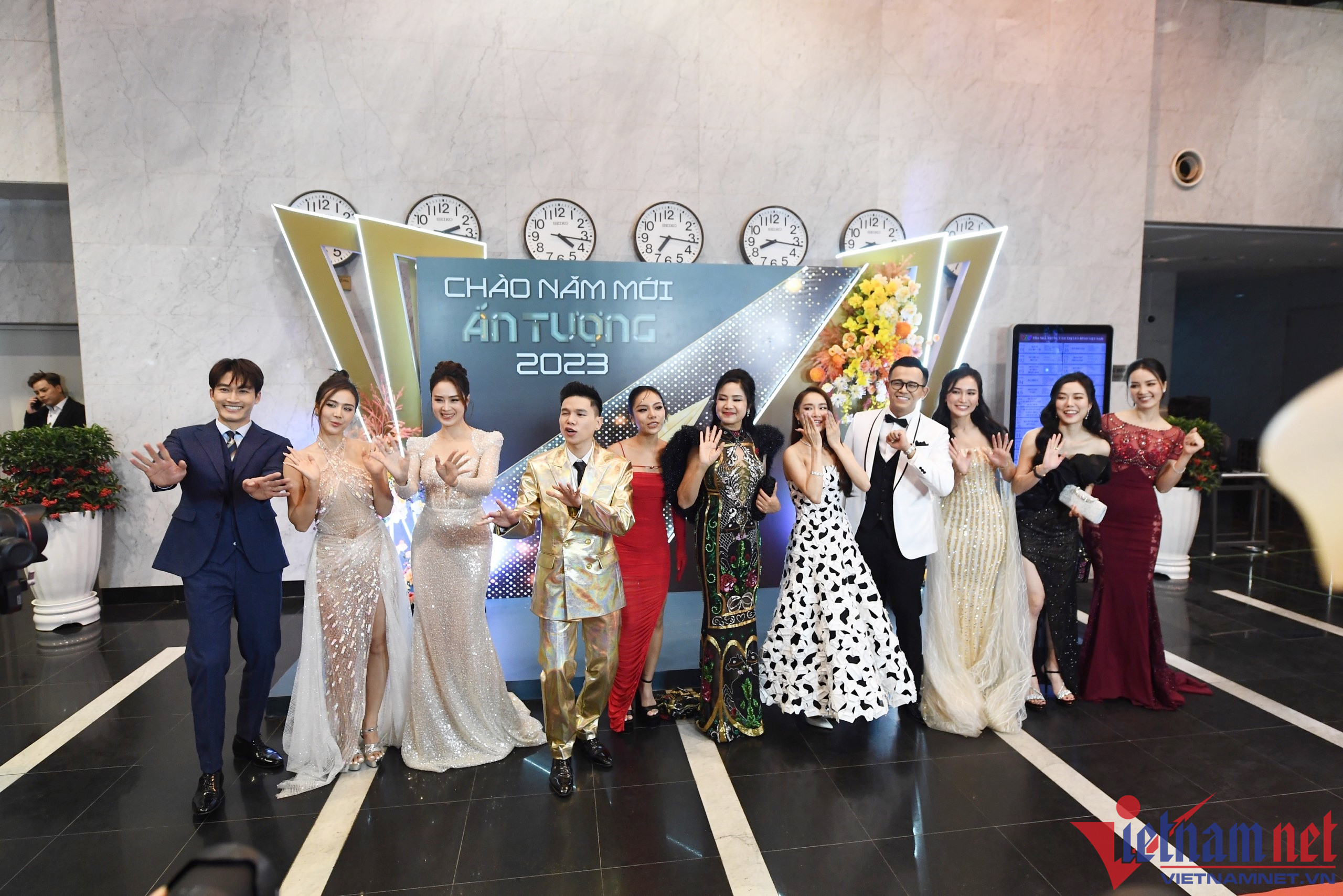 Tối 1/1/2023, chương trình "Chào năm mới - Ấn tượng 2023" truyền hình trực tiếp trên VTV. Khoảng 19h, các nghệ sĩ, gương mặt nổi tiếng của truyền hình Việt Nam có mặt từ sớm để ghi lại những khoảnh khắc kỷ niệm trên thảm đỏ.Tham gia chương trình nghệ thuật chào năm mới của VTV gồm nhiều gương mặt nghệ sĩ nổi tiếng. Đến khá sớm tham dự chương trình có diễn viên Quỳnh Lương, Đình Tú, Ngọc Huyền,... Diễn viên Đình Tú 'Thương ngày nắng về' diện vest bảnh bao, xuất hiện lẻ bóng chụp ảnh tại thảm đỏ.Nhã Phương hội ngộ Hồng Diễm. Cả hai đứng chung khung hình đều tươi tắn, xinh đẹp.BTV Thụy Vân diện đầm ren đỏ đô khoe 3 vòng gợi cảm. Cô vui vẻ chụp hình chung cùng dàn diễn viên 'Thương ngày nắng về' và nghệ sĩ Quyền Linh.Nhã Phương diện đầm cúp ngực, họa tiết nơ trắng xinh xắn kết thành chiếc đầm đẹp mắt. Cô chọn lối trang điểm nhẹ nhàng, xõa tóc dài thẳng mượt.Hồng Diễm diện đầm trắng óng ánh khoe 3 vòng gợi cảm. Những gương mặt tới sớm cùng tạo dáng chụp ảnh vui vẻ trước giờ trao giải. Diễn viên Phan Minh Huyền, BTV Thụy Vân, MC Đức Bảo đều chọn cho mình những bộ cánh nổi bật trong buổi tối hôm nay.Ca sĩ Hoàng Tôn diện vest màu vàng nổi bật chụp hình.Nghệ sĩ Quyền Linh chọn một bộ áo dài vàng tới tham dự lễ trao giải năm nay. Anh vui vẻ trò chuyện cùng mọi người trước giờ G.Nhạc sĩ Giáng Son diện đầm đen sang trọng với điểm nhấn là chuỗi vòng ngọc trai sáng bóng.Cao Thái Hà lọt top 'Diễn viên nữ ấn tượng' VTV Awards 2022