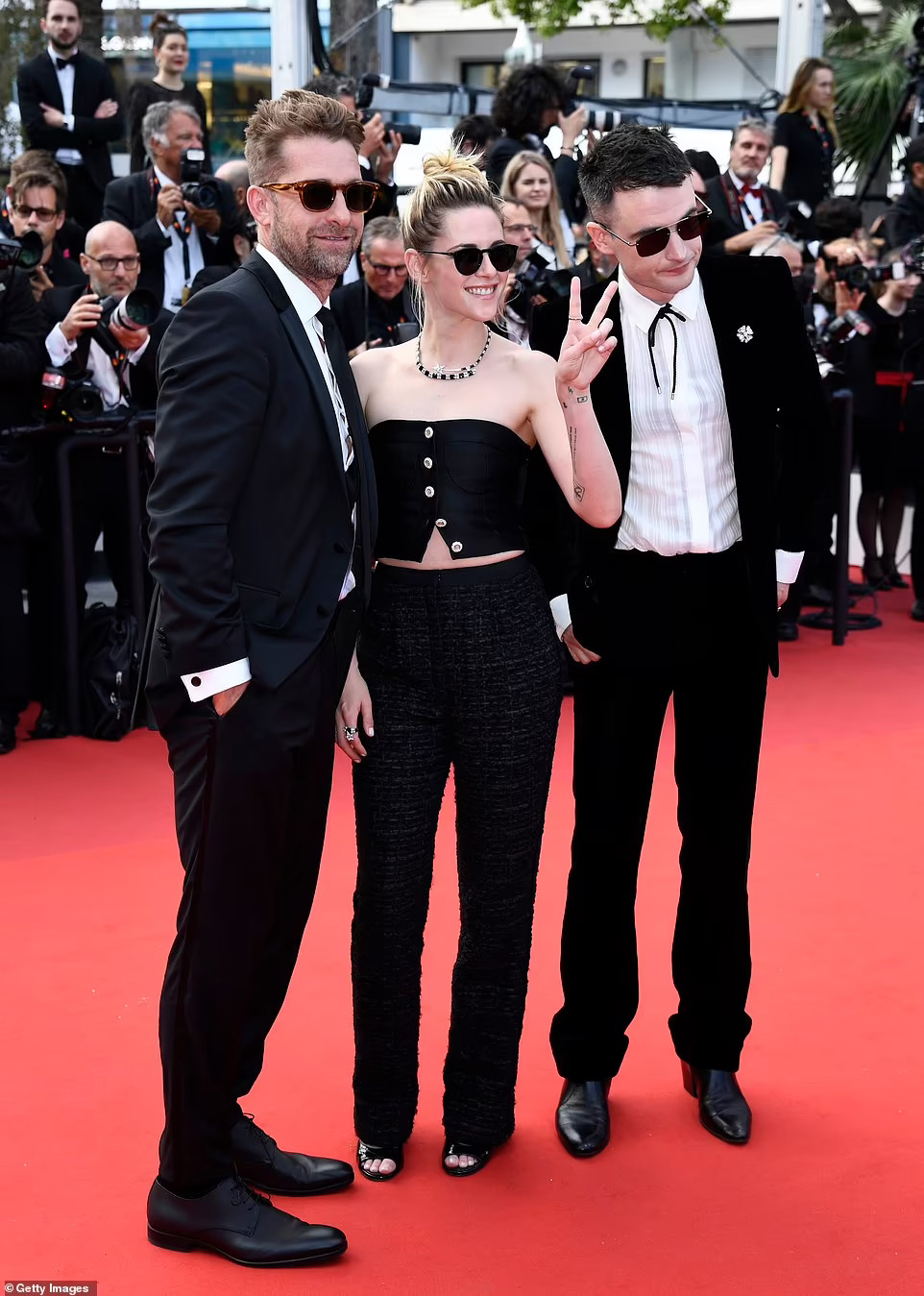 Kristen Stewart đeo kính râm đen cực ngầu trên thảm đỏ. Cô đến Cannes ngày 8 cùng hai diễn viên phimCrimes Of The Future là Scott Speedman và Tom Sturridge.Maye Musk, cựu người mẫu 74 tuổi, mẹ của tỷ phú Elon Musk đến Cannes trong chiếc đầm lụa màu xám vô cùng thanh lịch.