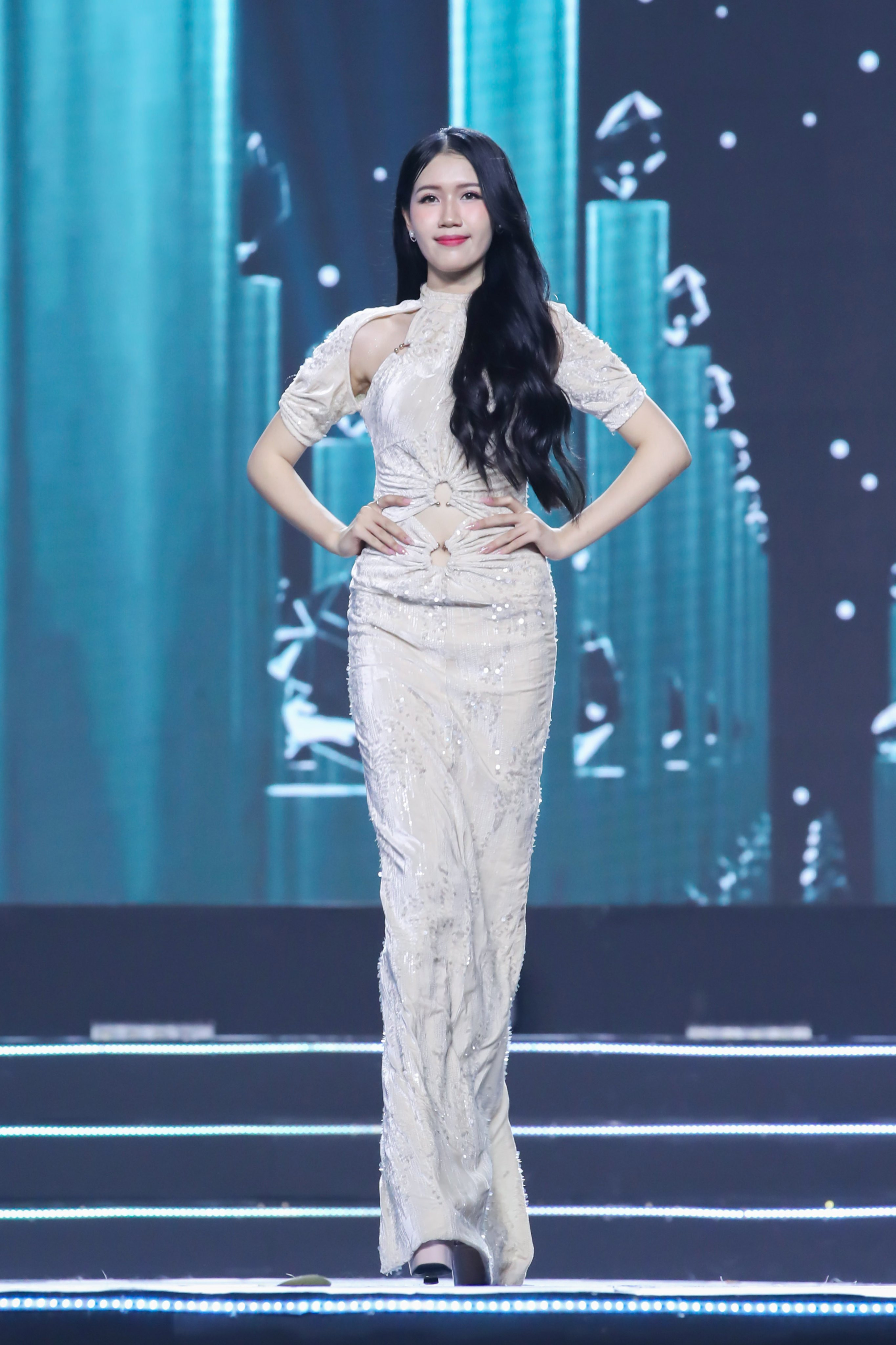 BST“Khuê Các” của NTK Đặng Trọng Minh Châu với thông điệp về ý thức giữ gìn văn hoá dân tộc, đặc biệt là đối với các cô gái trẻ là tiết mục thứ 2. Đồng thời, BST cũng tôn vinh nhan sắc của người con gái Việt Nam tuổi đôi mươi với nhiều hoài bão và khát vọng. Màu sắc chủ đạo là hồng, trắng, xanh dương, vàng, họa tiết được đính kết vô cùng tinh xảo với phụ kiện đi kèm là chiếc mấn đính ngọc trai làm tăng vẻ đẹp kiêu sa, đài các cho các thí sinh.