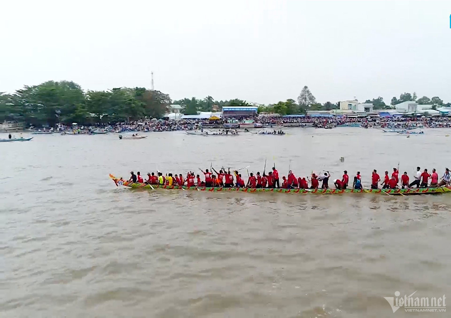 60 đội đến từ nhiều tỉnh, thành phố miền Tây tham gia tranh tài tại lễ hội Oóc Om Bóc - Đua ghe ngo tỉnh Sóc Trăng thu hút hàng nghìn người đến xem, cổ vũ.