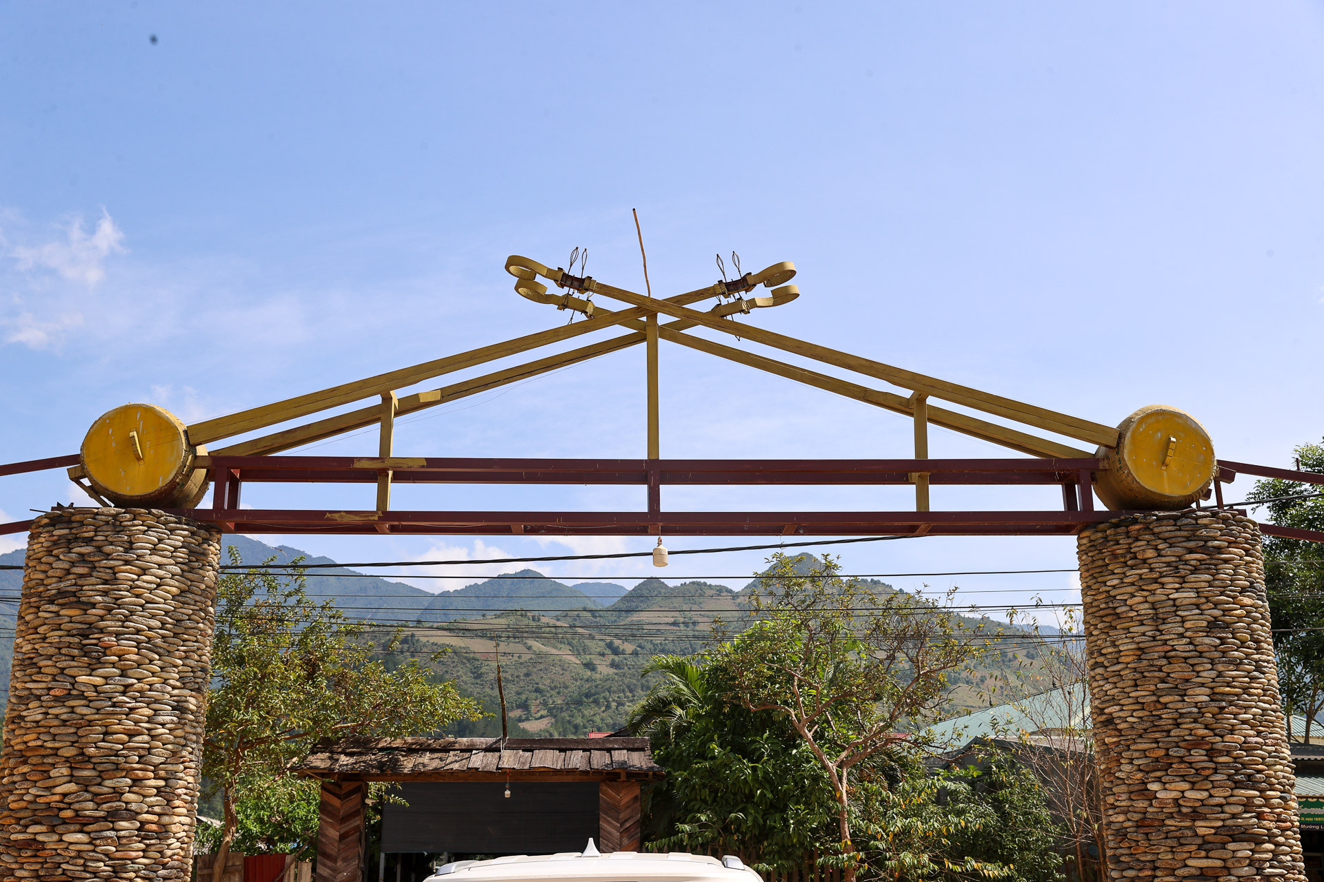 Chiếc cổng đá có gắn đàn Tính (đàn Tính Tẩu) tượng trưng cho văn hoá đồng bào dân tộc Thái, Khèn tượng trưng cho văn hoá đồng bào dân tộc Mông, và chum đá là biểu tượng cho chum rượu cần Lẩu Xá của đồng bào dân tộc La Ha. Biểu tượng đoàn kết của 3 dân tộc có dân số lớn nhất xã Ngọc Chiến.