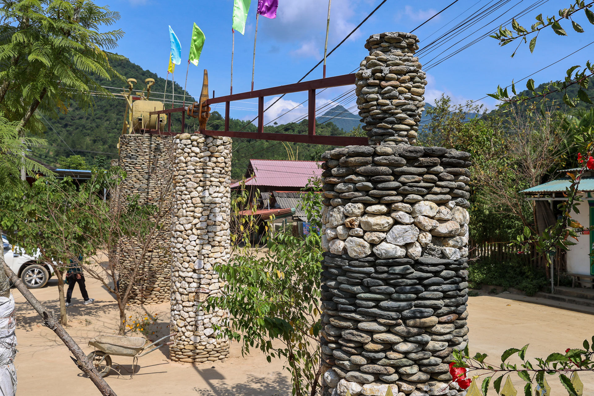 Trung tâm văn hoá của bản Mường Chiến rộng 1,2ha, là nơi tổ chức sinh hoạt cộng đồng của xã Ngọc Chiến. Những viên đá cuội được người dân ra suối mang về ghép thành hình chiếc cổng.