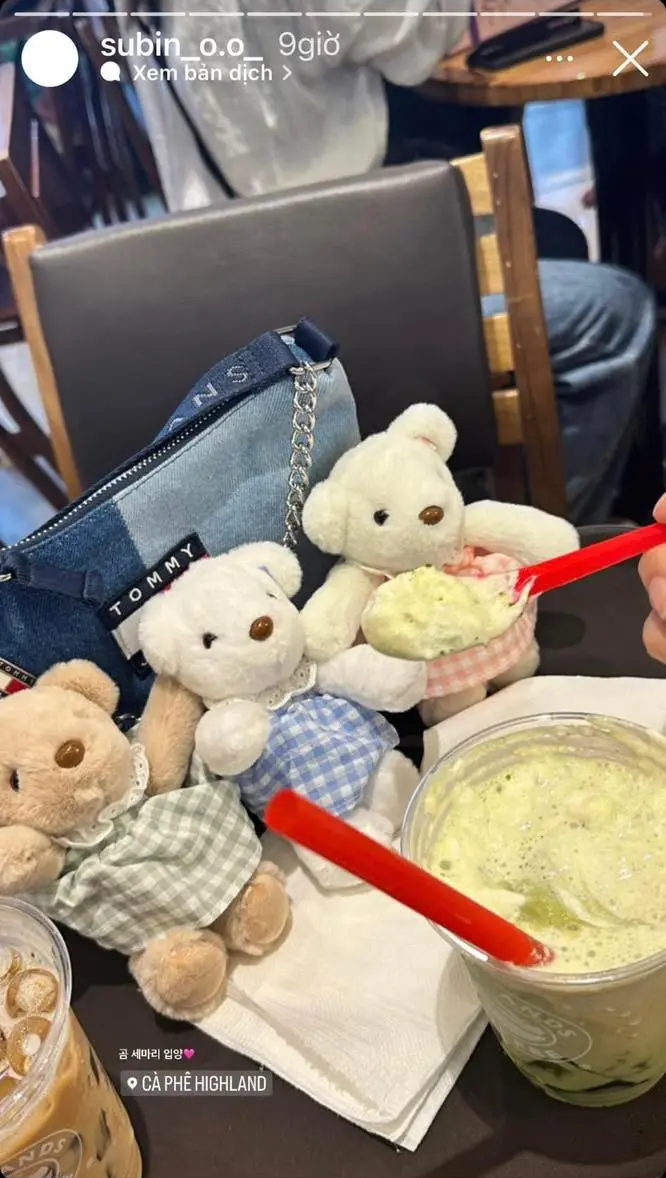 Hay một vũ công khác của nhóm Blackpink có tên Subin cũng mê mẩn hương vị cà phê Việt. Cô ghé một cửa hàng cà phê của chuỗi thương hiệu H. khá quen thuộc với giới trẻ Việt Nam và gọi món trà xanh đá xay.