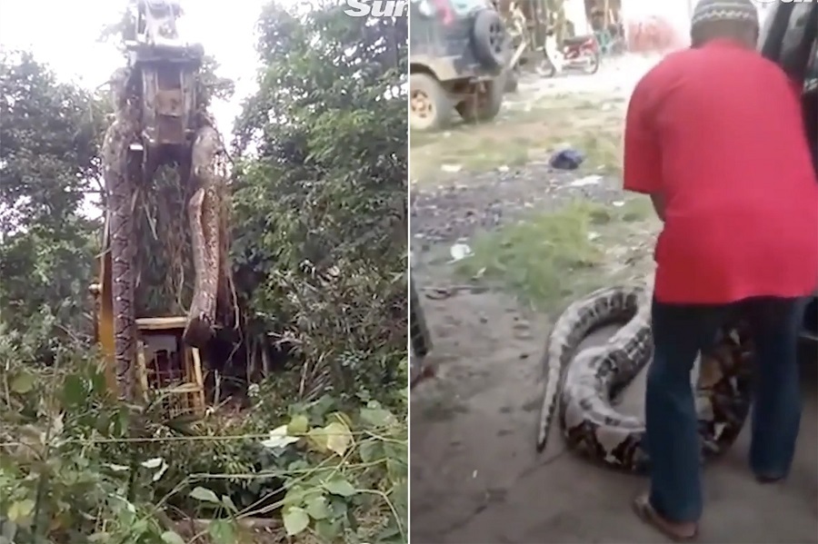 Cần cẩu nhấc lên con rắn khổng lồ, nhiều người rùng mình