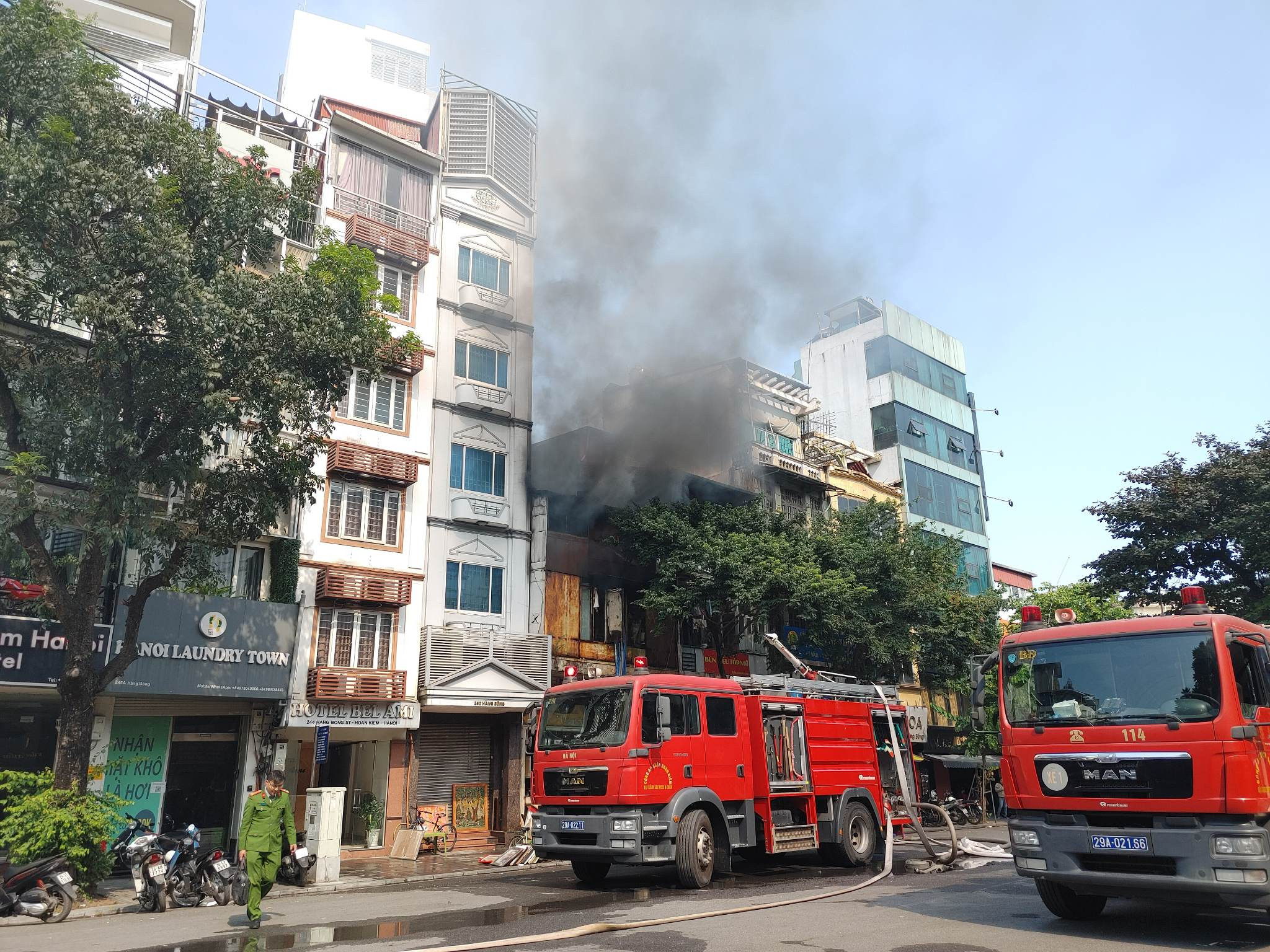 Nhận được tin báo, Đội Cảnh sát PCCC&CNCH Công an quận Hoàn Kiếm và Ba Đình được điều động đến hiện trường dập lửa.