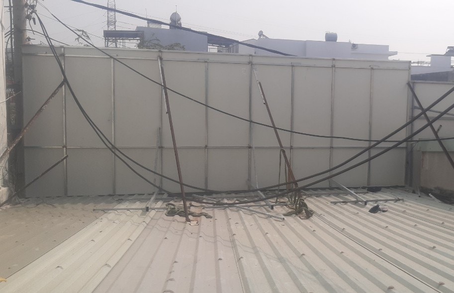 | Vị trí mái tôn nơi phát hiện anh H. bị điện giật tử vong. Ảnh: V.Anh |