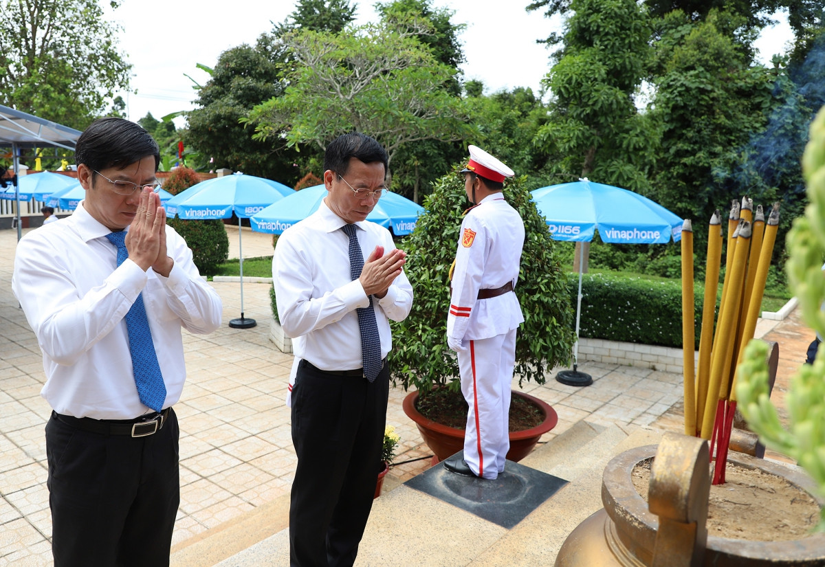 Sau lễ dâng hương tại nghĩa trang ngành TT&TT, đoàn cũng đến dâng hương tại Nghĩa trang liệt sĩ Đồi 82, Tây Ninh và thăm Nhà Truyền thống Giao bưu và Thông tin (R) tại Khu di tích Trung ương cục Miền Nam.