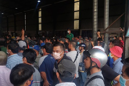 Cảnh hỗn loạn, chen lấn của nghìn người đến lấy phiếu hẹn kiểm định xe cơ giới tại trung tâm đăng kiểm 50-05V chi nhánh An Phú Đông (quận 12, TP.HCM) sáng 25/4.