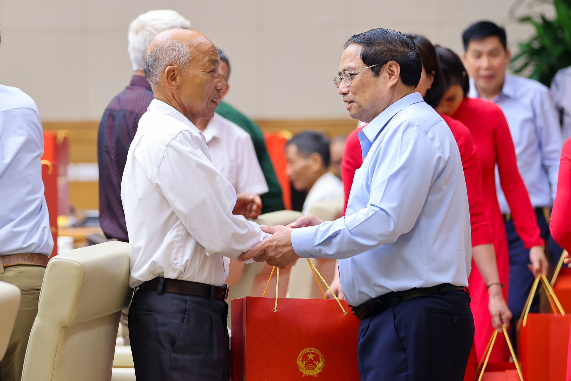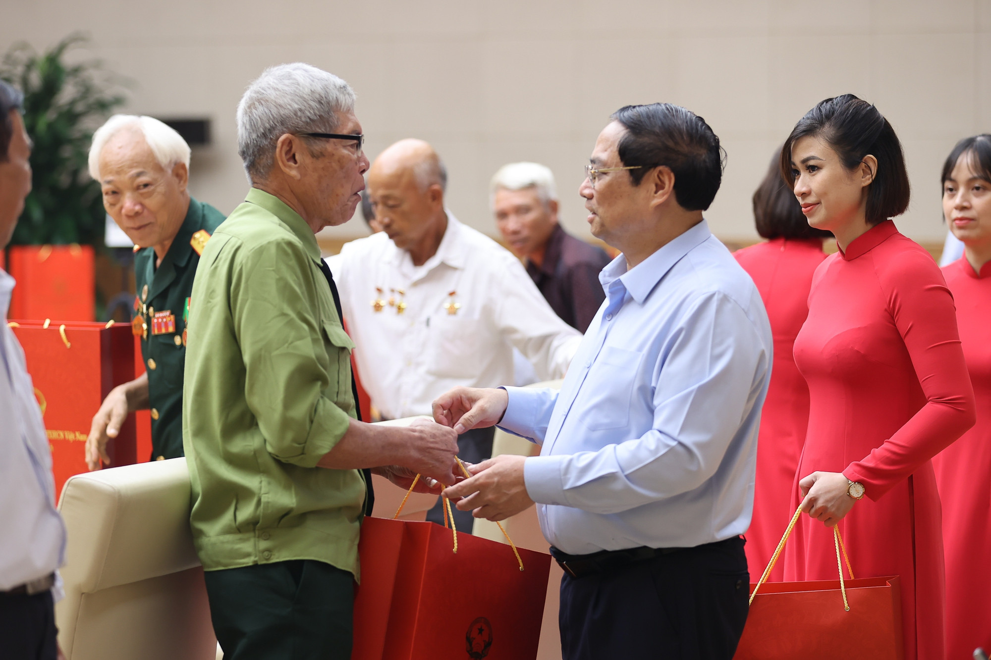 Thủ tướng Phạm Minh Chính gặp mặt Đoàn đại biểu người có công tiêu biểu tỉnh Nam Định - Ảnh: VGP/Nhật Bắc