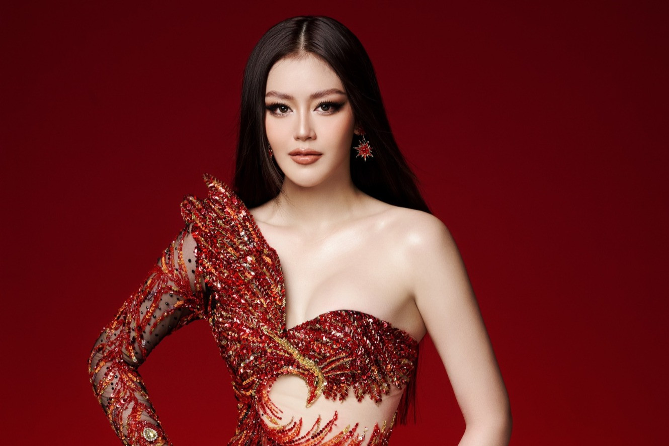 Trong bộ ảnh được thực hiện trước khi bước vào hành trình tập luyện với cường độ cao, Đặng Thanh Ngân gây chú ý nhờ vóc dáng gợi cảm. Cô diện các thiết kế dạ hội của NTK Brian Võ với các đường đính kết, cut-out tôn vinh vòng eo nhỏ, bờ hông quyến rũ.