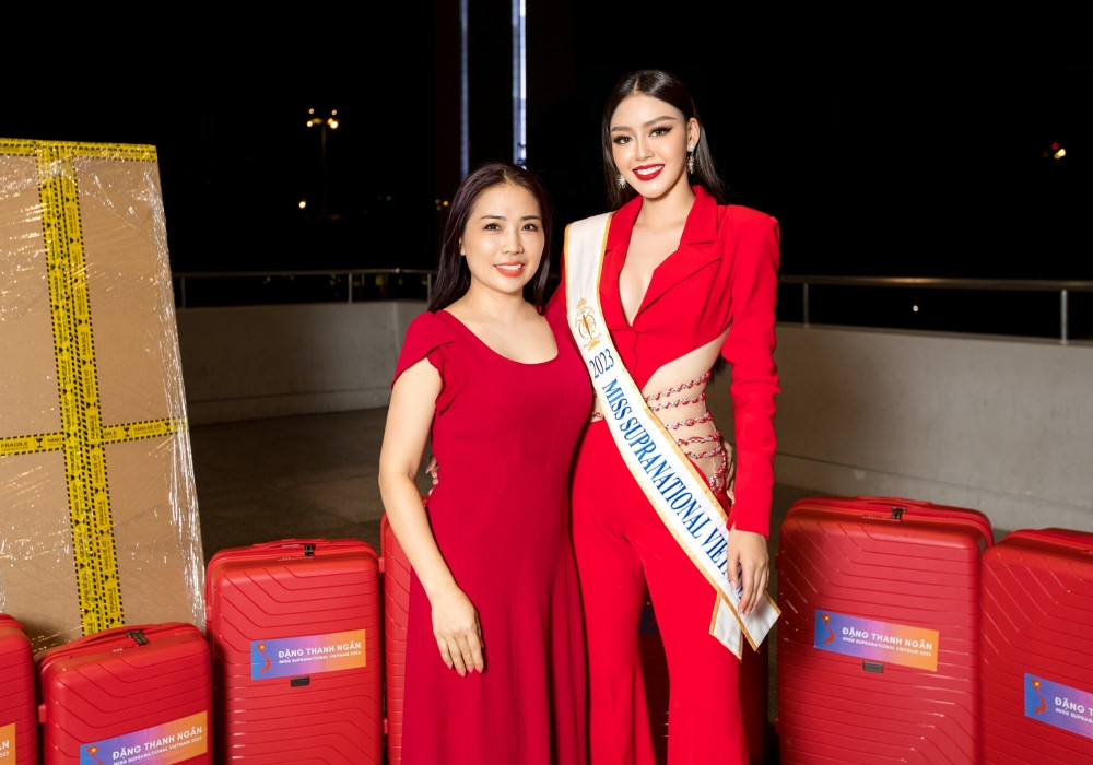 Tiễn Đặng Thanh Ngân ra sân bay lên đường dự thi Miss Supranational 2023 là đại gia đình cô gồm có ông bà, bố mẹ, một số đồng nghiệp thân thiết. Trong vòng tay người thân, Đặng Thanh Ngân hứa sẽ chăm sóc bản thân tốt, luôn giữ vững tinh thần và nỗ lực vì màu cờ sắc áo.