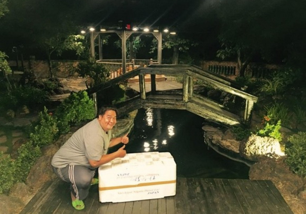 Ban đầu, Hoàng Mập nhập khoảng 36 con cá Koi. Anh đặt tên mỗi con ứng với các nghệ sĩ thân thiết như NSƯT Hoài Linh, Chí Tài, Việt Hương, Huy Khánh, Ngọc Lan,... Anh nói đùa mỗi ngày gọi cá lên ăn cảm giác thân tình vì như gọi những người thân, bạn bè. Tuy nhiên, vì một kỷ niệm buồn nên anh phải mang đàn cá này mang đi trả, sau đó mua về các con cá kích cỡ nhỏ hơn để nuôi cho đến hiện tại.