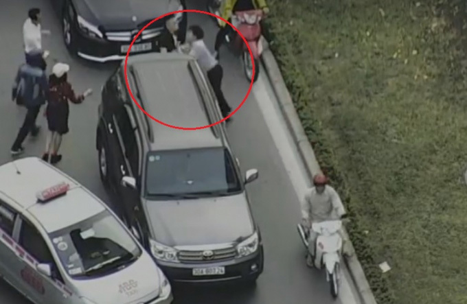 Sau va chạm giao thông, nam thanh niên ngoại quốc điều khiển xe máy và thanh niên đi trên xe ô tô xảy ra xô xát.